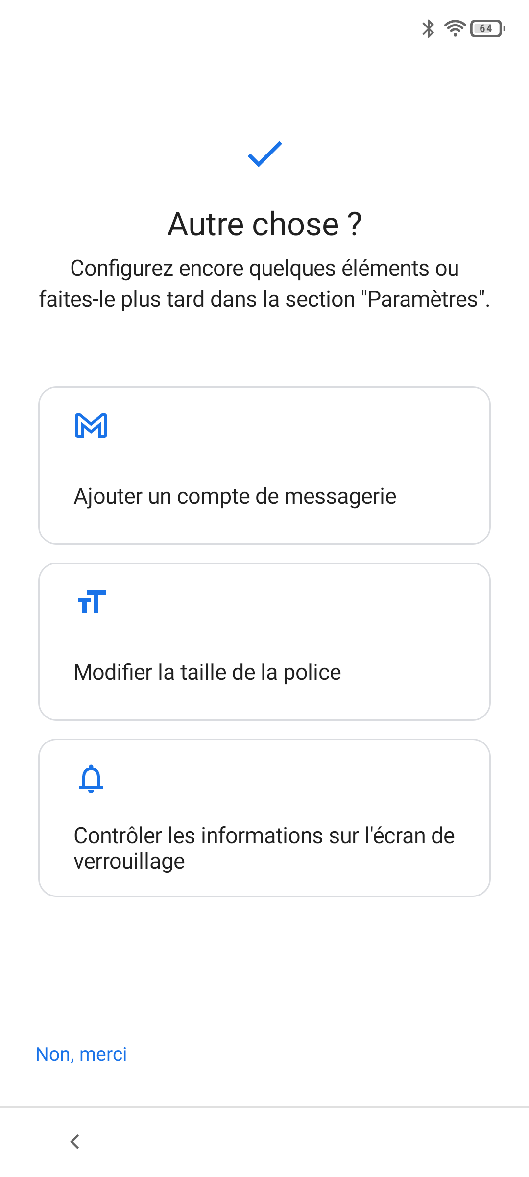 Le Unihertz Luna tourne sous une version pure d' Android 12, cela veut dire que Unihertz n’a pas modifié le système d'exploitation et n’a pas ajouté des tas d’applications non désirées. Il y a cependant une petite surcouche pour la gestion des leds à l’arrière du téléphone mais c’est tout.La configuration du téléphone suit donc les mêmes écrans que les autres téléphones sous Android 12, il y a juste pour le verrouillage où il ne propose que le déverrouillage par reconnaissance faciale. Le capteur d’empreinte doit être configuré séparément.