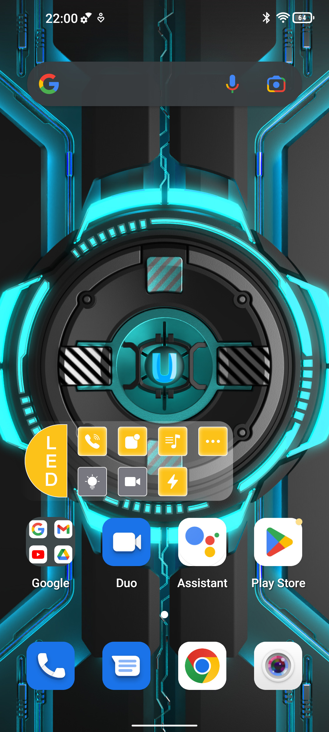 L’arrière est sans doute l’élément le plus marquant de ce téléphone car contrairement à la tendance générale de produire des téléphones avec un fond uniforme ou à effet miroir, Unihertz a joué la carte de l’originalité. L’arrière du téléphone est parcouru par plusieurs leds qui peuvent s’allumer en fonction de plusieurs déclencheurs. Ils peuvent s’allumer lorsque vous recevez un appel, une notification ou encore quand vous écoutez de la musique. Le comportement des leds est directement paramétrable depuis l’écran d’accueil.
