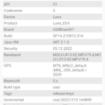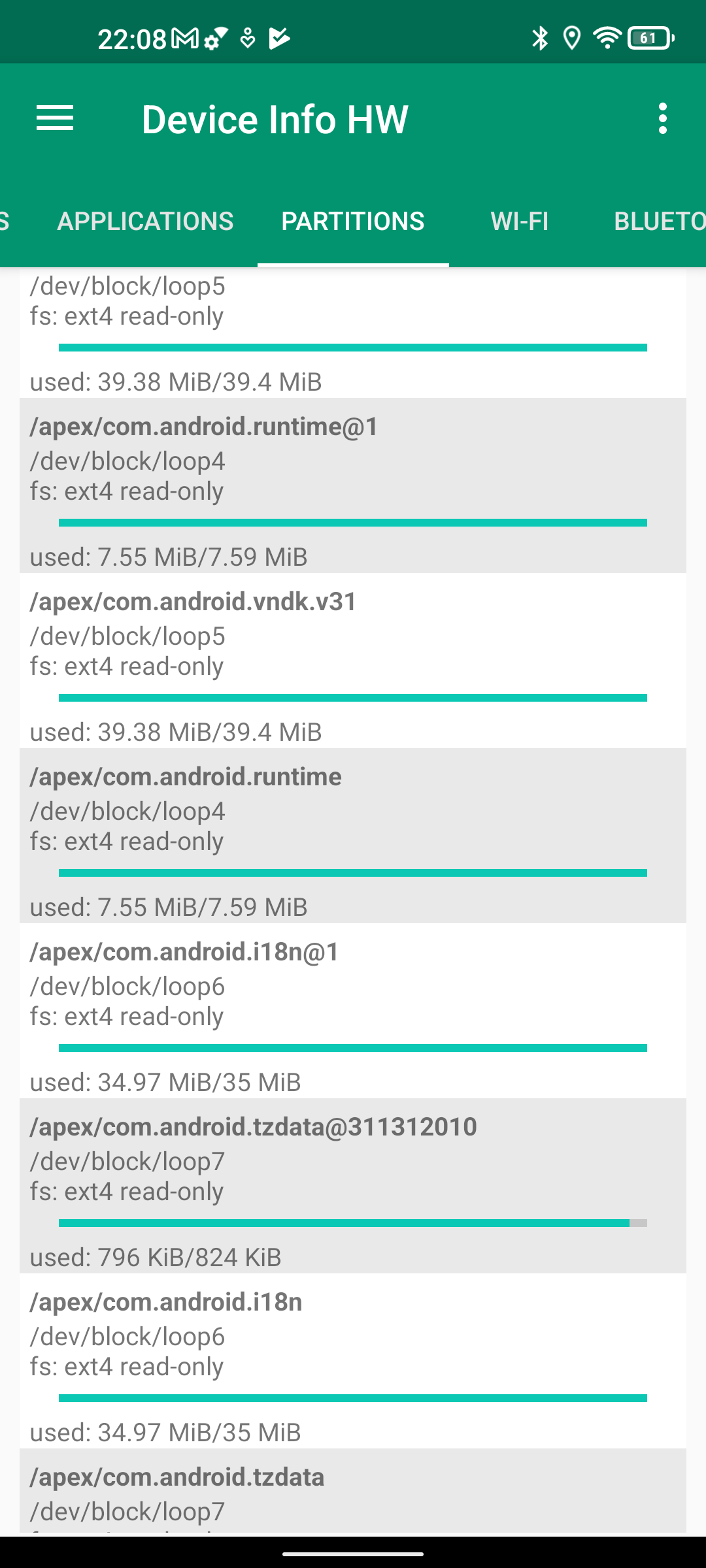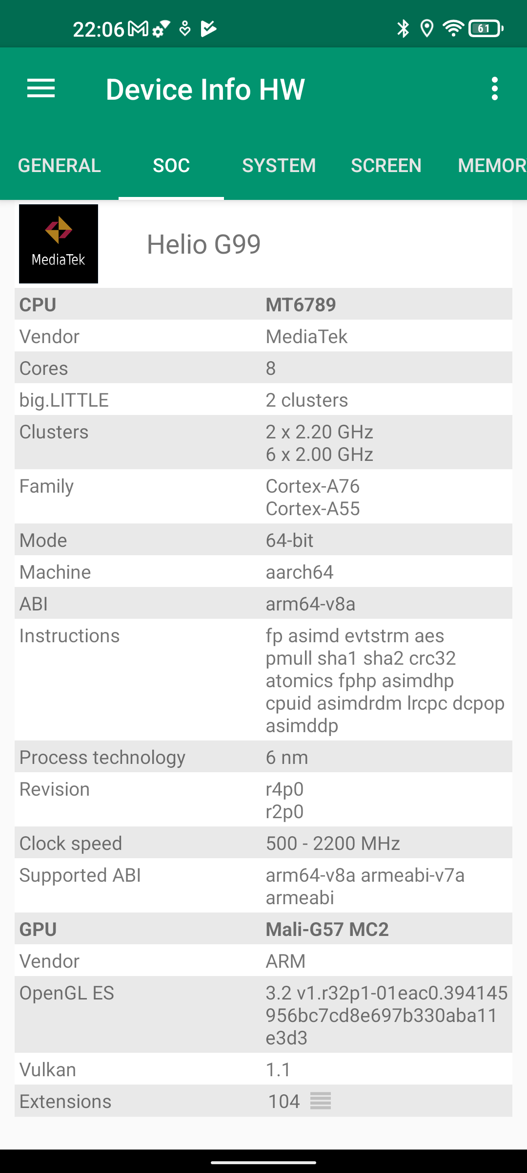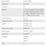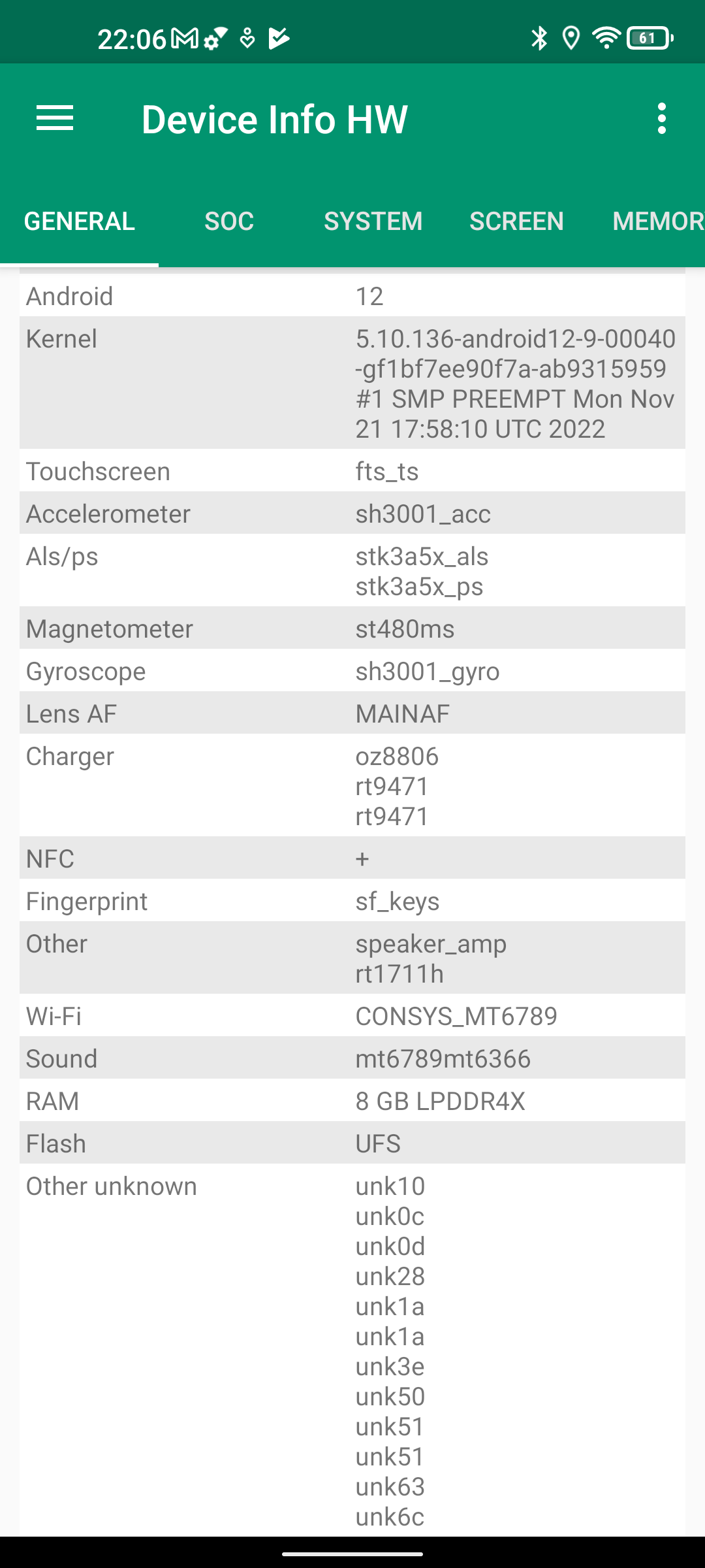 Les informations ci-dessous proviennent de l'application Device Info HW. L'application fournit des informations techniques détaillées sur le téléphone testé.Le Unihertz Luna utilise la même architecture Mediatek que le Unihertz Tank. Le modèle que j’ai testé dispose de 8 Gb de mémoire RAM et 256 Gb de mémoire de stockage.