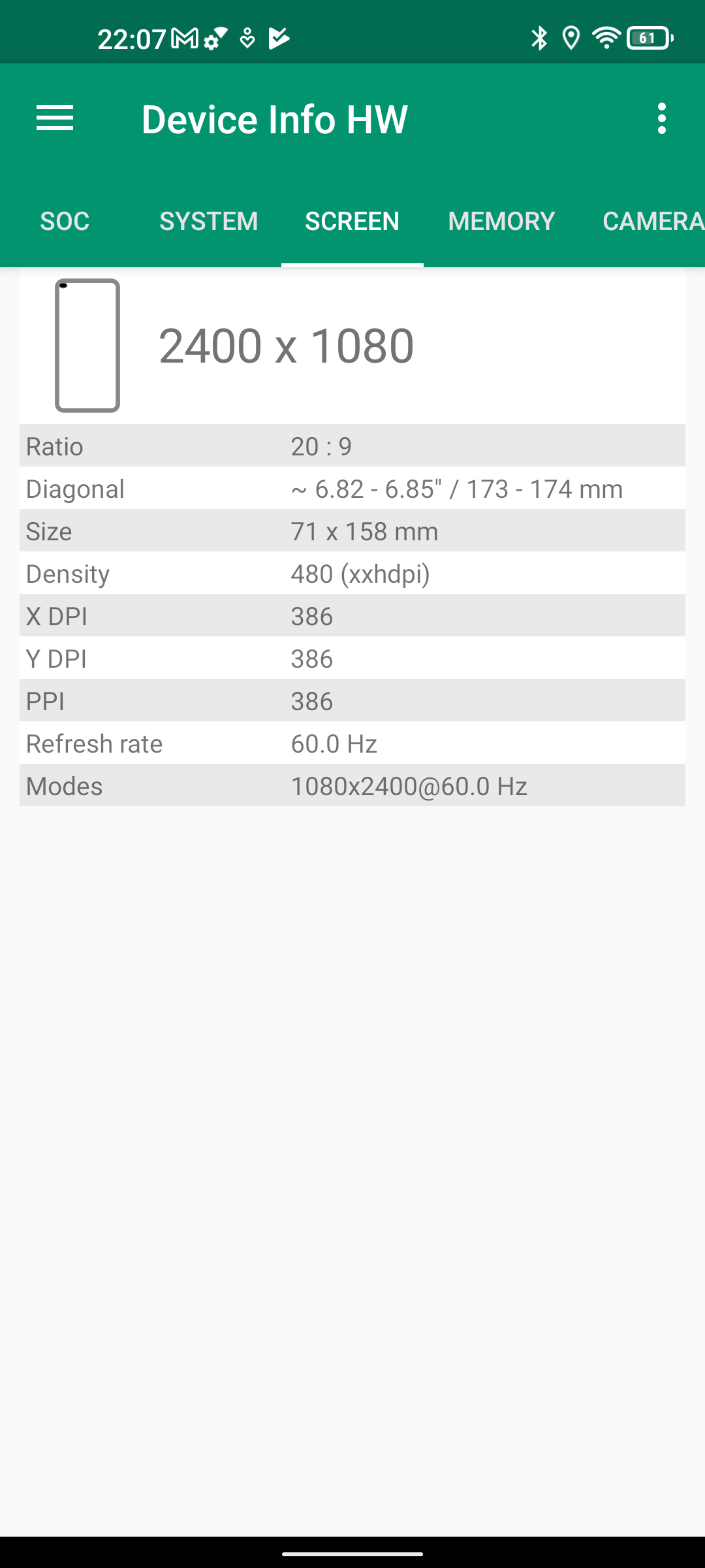 L’écran de 6.81 pouces a une résolution de 2400 x 1080 et une fréquence de 60Hz.