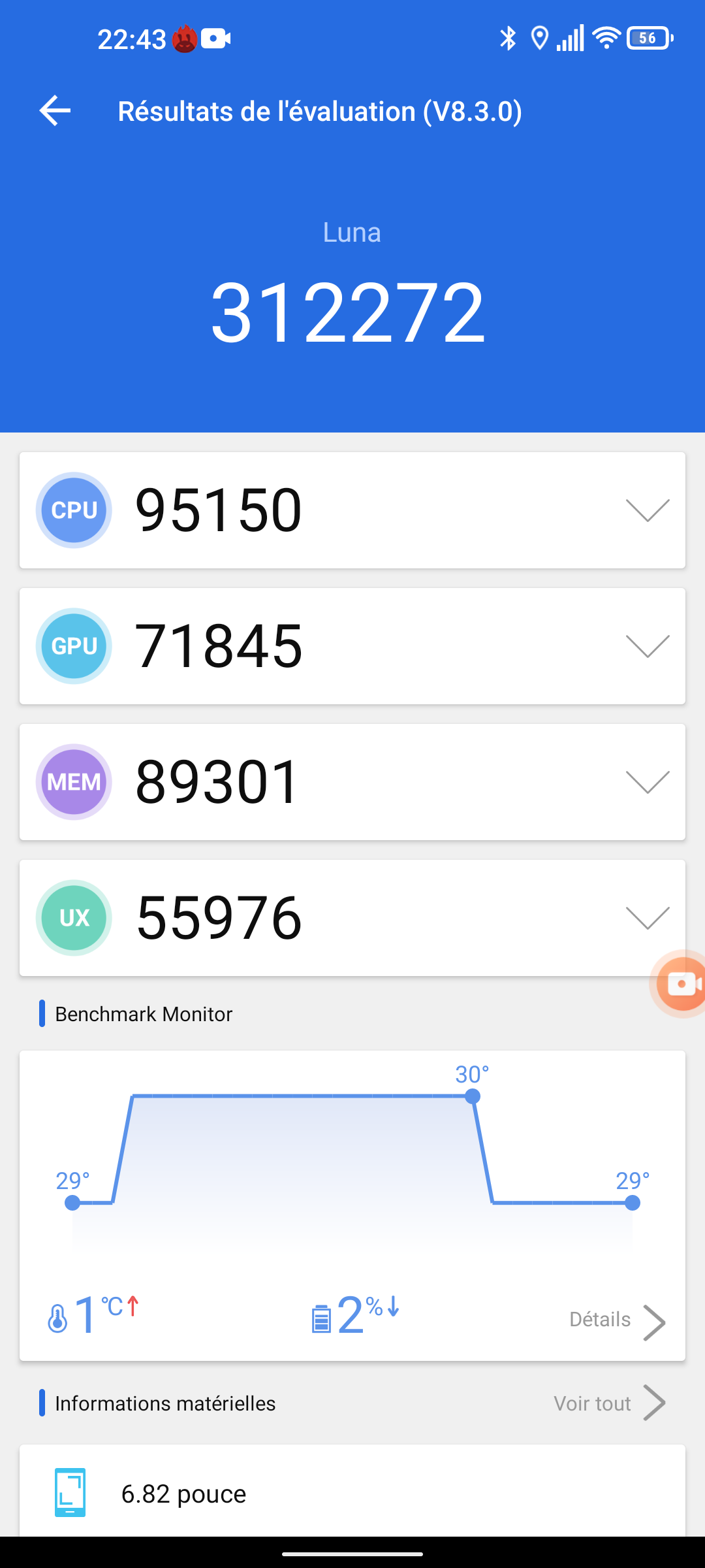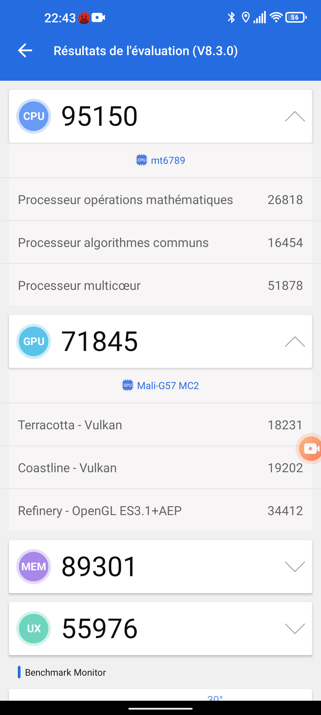 J’avais obtenu des résultats très similaires avec le Unihertz Tank qui utilise le même matériel, ceci montre une fois de plus que ce test produit des résultats fiables.