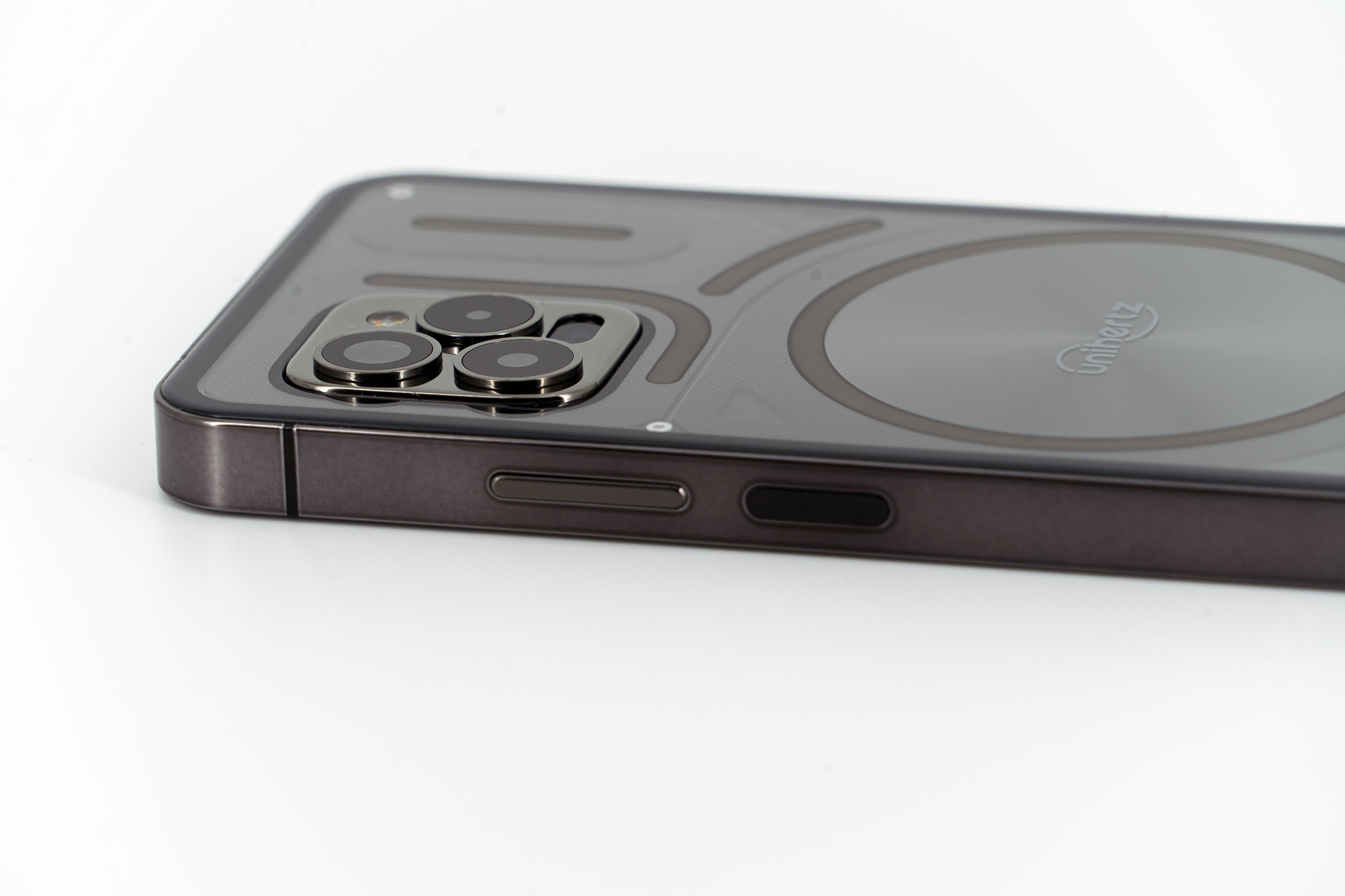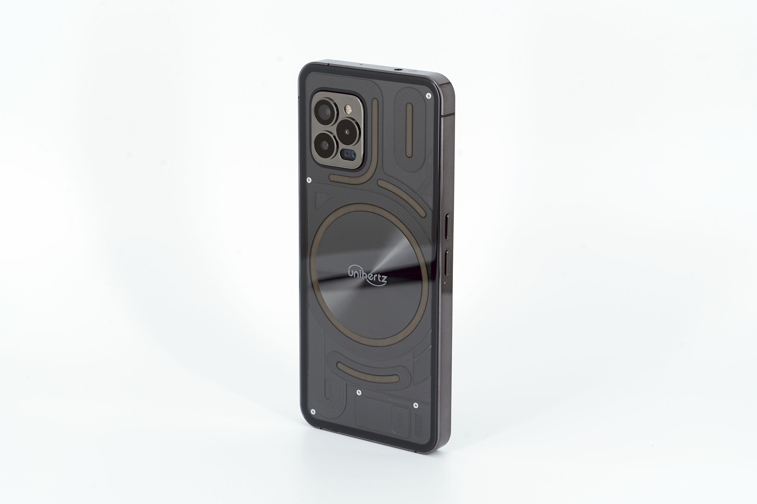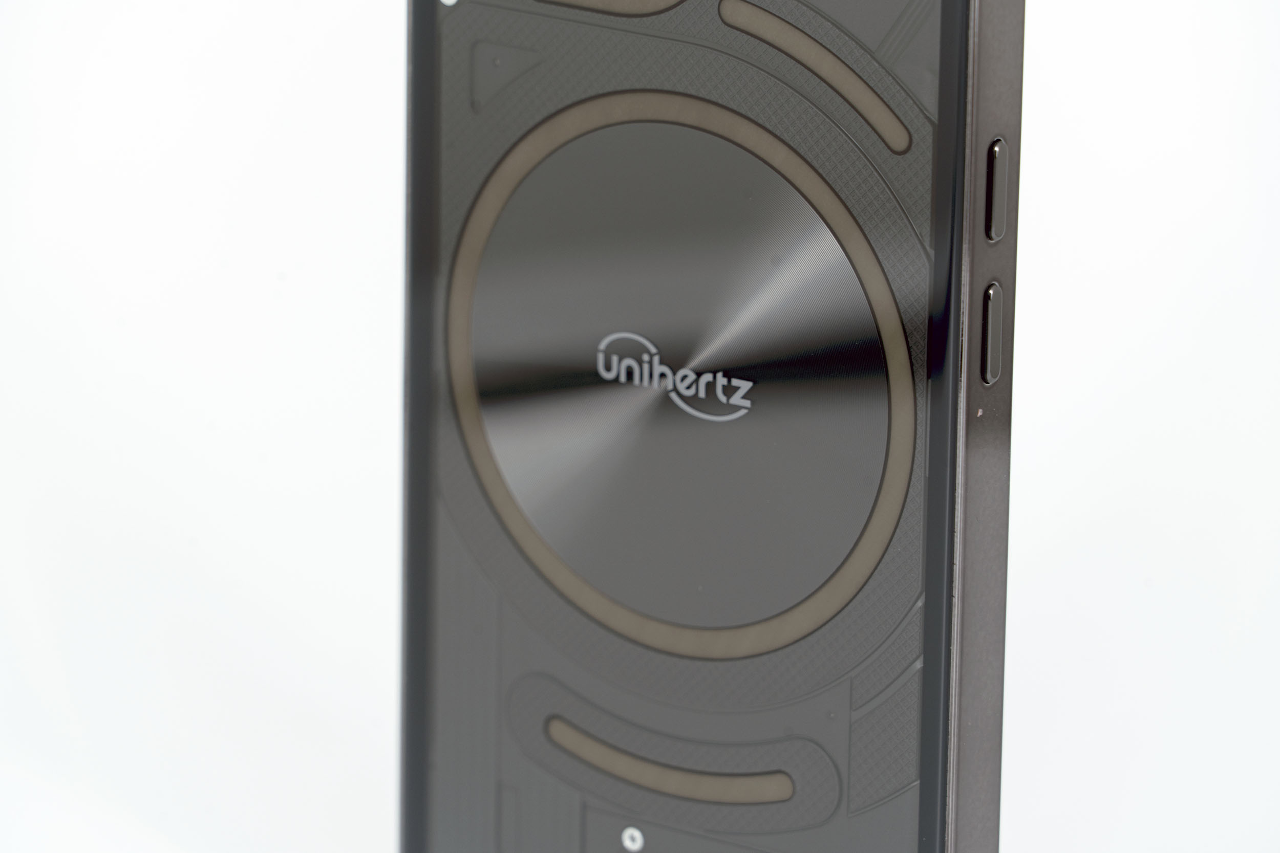 Le Unihertz Luna est un téléphone assez massif, il pèse presque 300 grammes et mesure 168 mm sur 76,8 mm, il est également assez épais avec ses 104 mm. Ce téléphone reprend un style propre à Apple avec des coins arrondis et des bords droits, il s’inspire également du NothingPhone pour les effets leds.