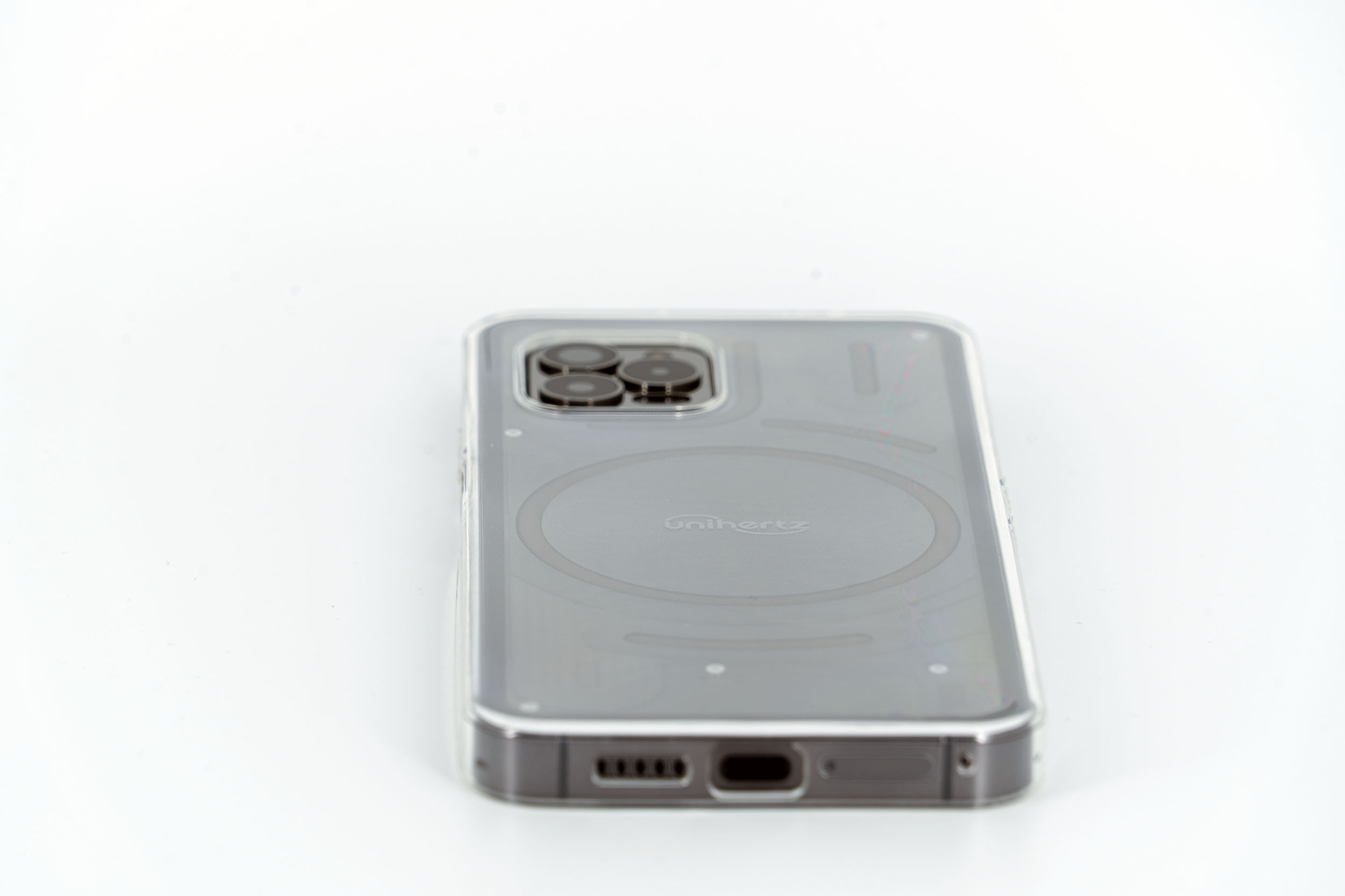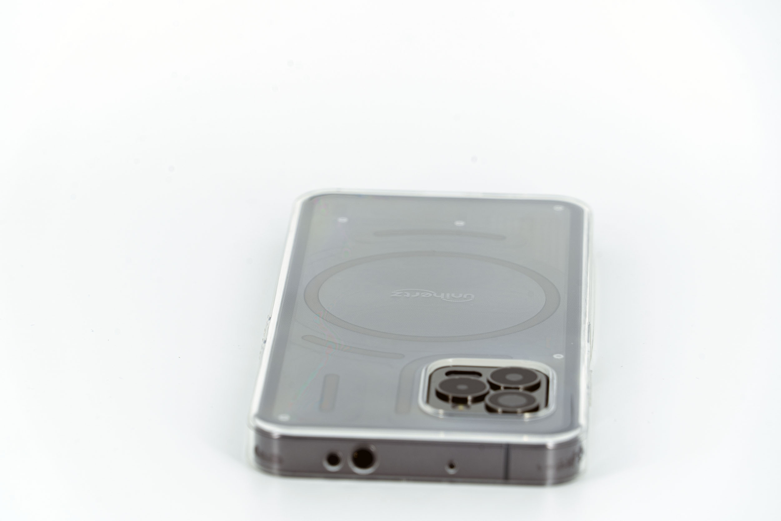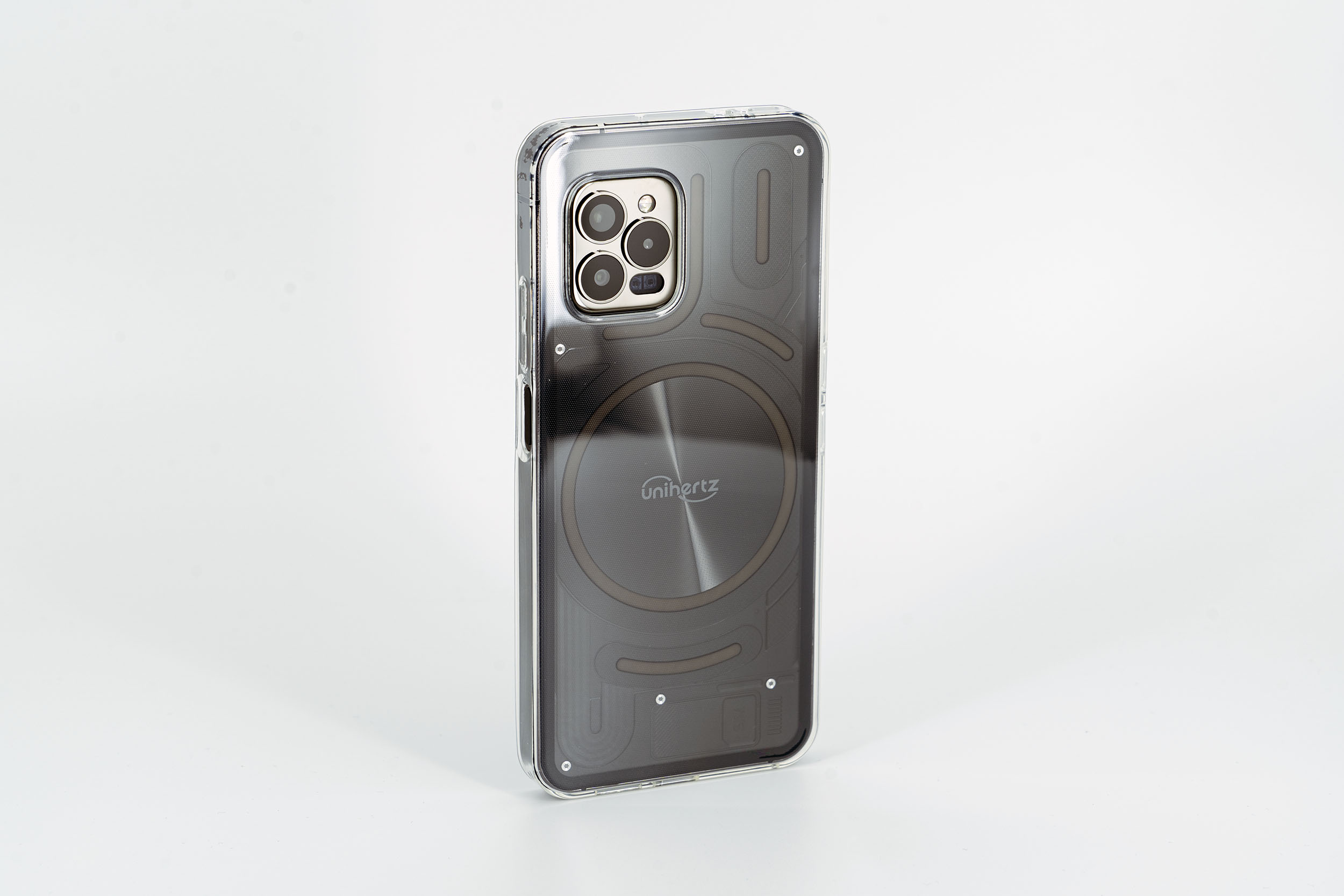 Le Unihertz Luna est un téléphone assez massif, il pèse presque 300 grammes et mesure 168 mm sur 76,8 mm, il est également assez épais avec ses 104 mm. Ce téléphone reprend un style propre à Apple avec des coins arrondis et des bords droits, il s’inspire également du NothingPhone pour les effets leds.