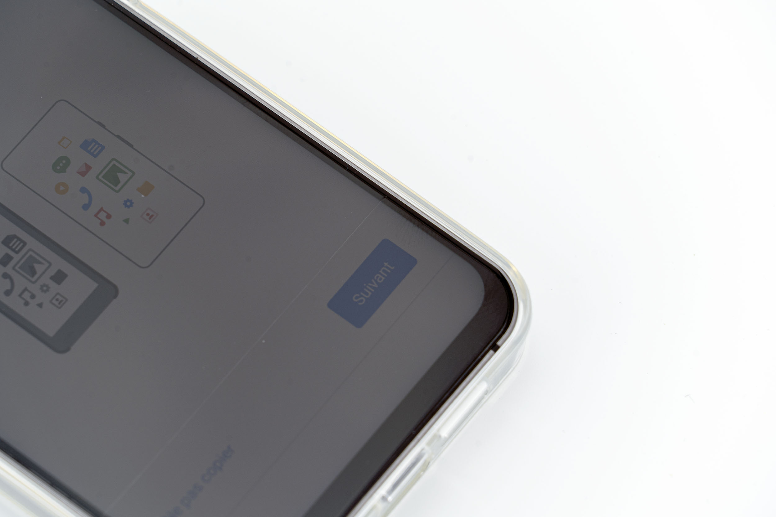 La boite contient le téléphone qui est déjà enveloppé dans une protection transparente en silicone mou, c’est aussi ce que Xiaomi fait mais ils séparent la protection du téléphone. Cette protection semble être de bonne qualité et met assez bien le téléphone en valeur. Dans la boite on retrouve également un chargeur, un câble usb, un manuel et une protection d’écran supplémentaire car l’écran est déjà protégé par un film de plastique.