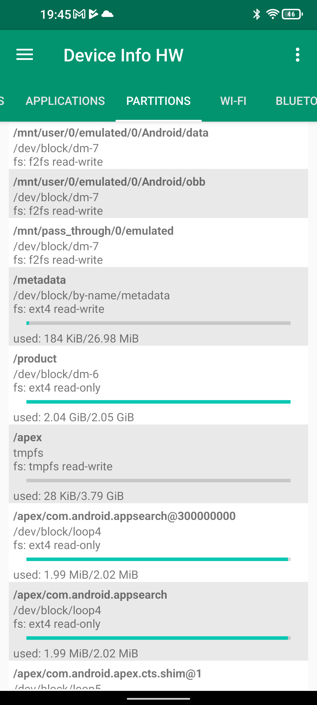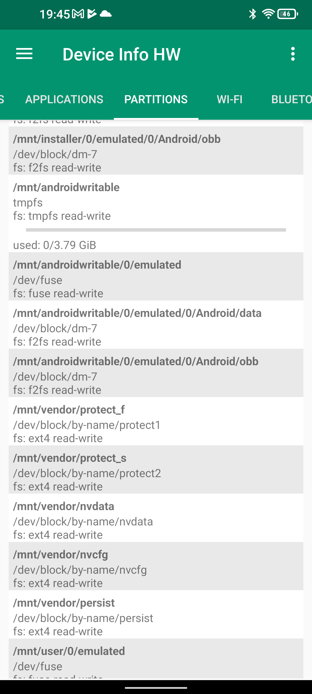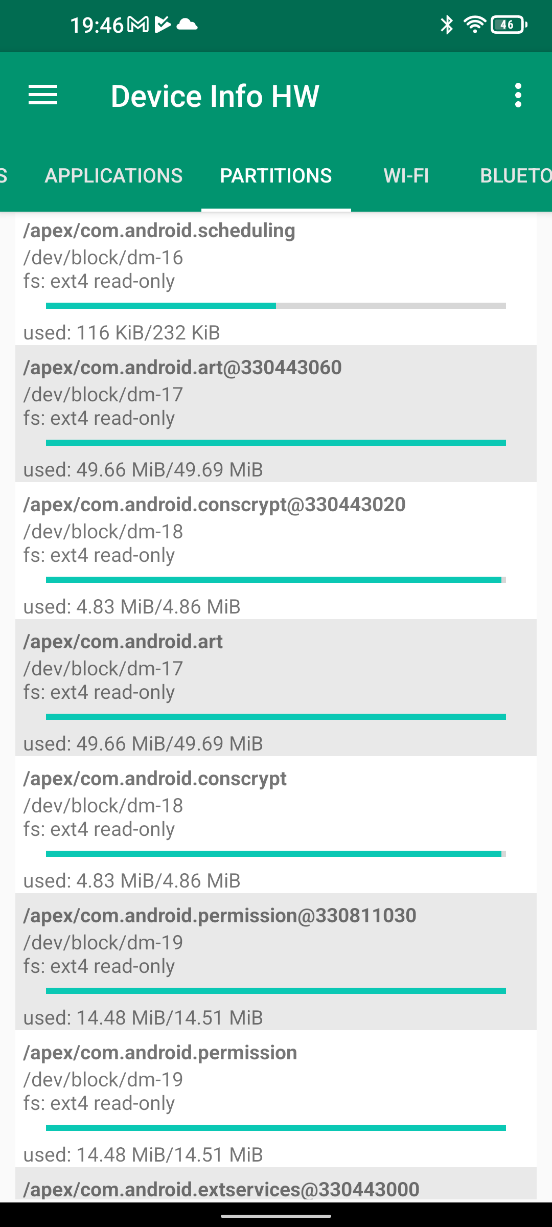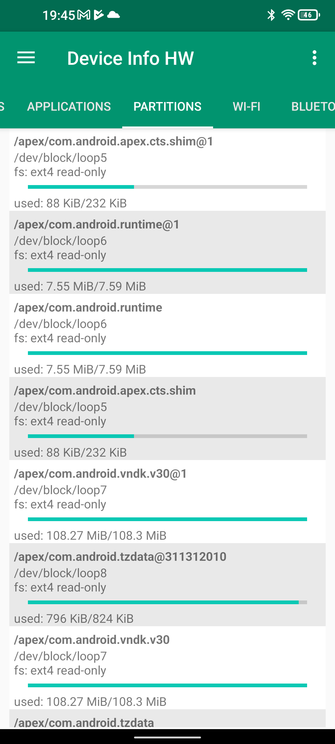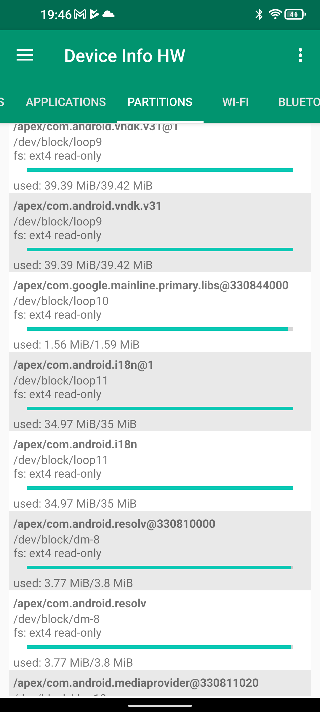 Les informations ci-dessous proviennent de l'application Device Info HW. L'application fournit des informations techniques détaillées sur le téléphone testé.Le Unihertz Tank tourne sur la même architecture que le Poco M5 mais je reviens sur ce point dans un des paragraphes suivants. Je n'avais pas reçu une fiche technique détaillée avec le téléphone, j'ai donc du fouiller un peu dans ses caractéristiques techniques pour comprendre de quoi il était composé. Le fait qu'il tourne sur la même architecture que le POCO implique qu'il partage les composants suivants: CPU, GPU, modem, puce wifi, puce gps,... A priori d'un point de vue technique il devrait donc avoir des performances assez similaires au POCO sauf que son énorme armure pourrait jouer un rôle dans la sensibilité au réseau mais ce point sera testé plus loin dans ce test également.