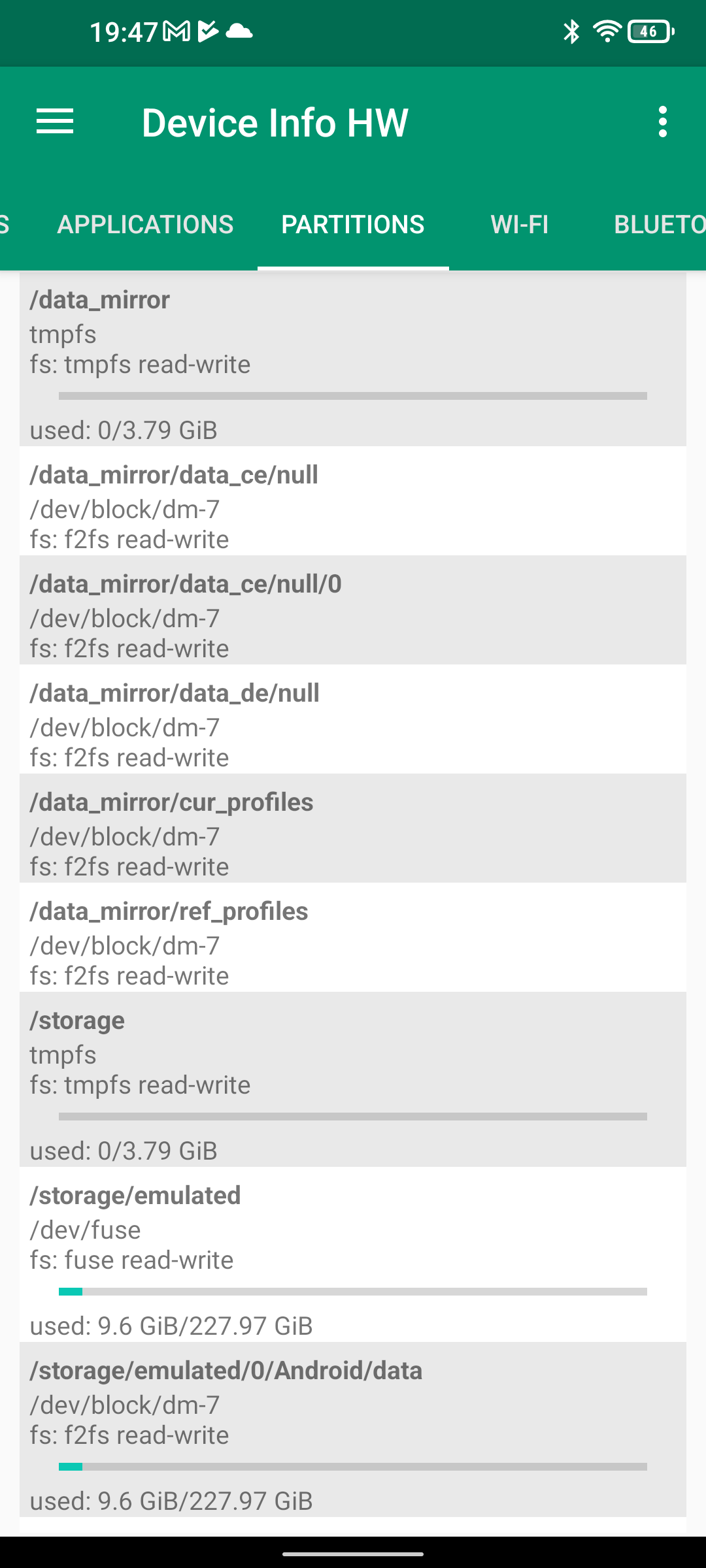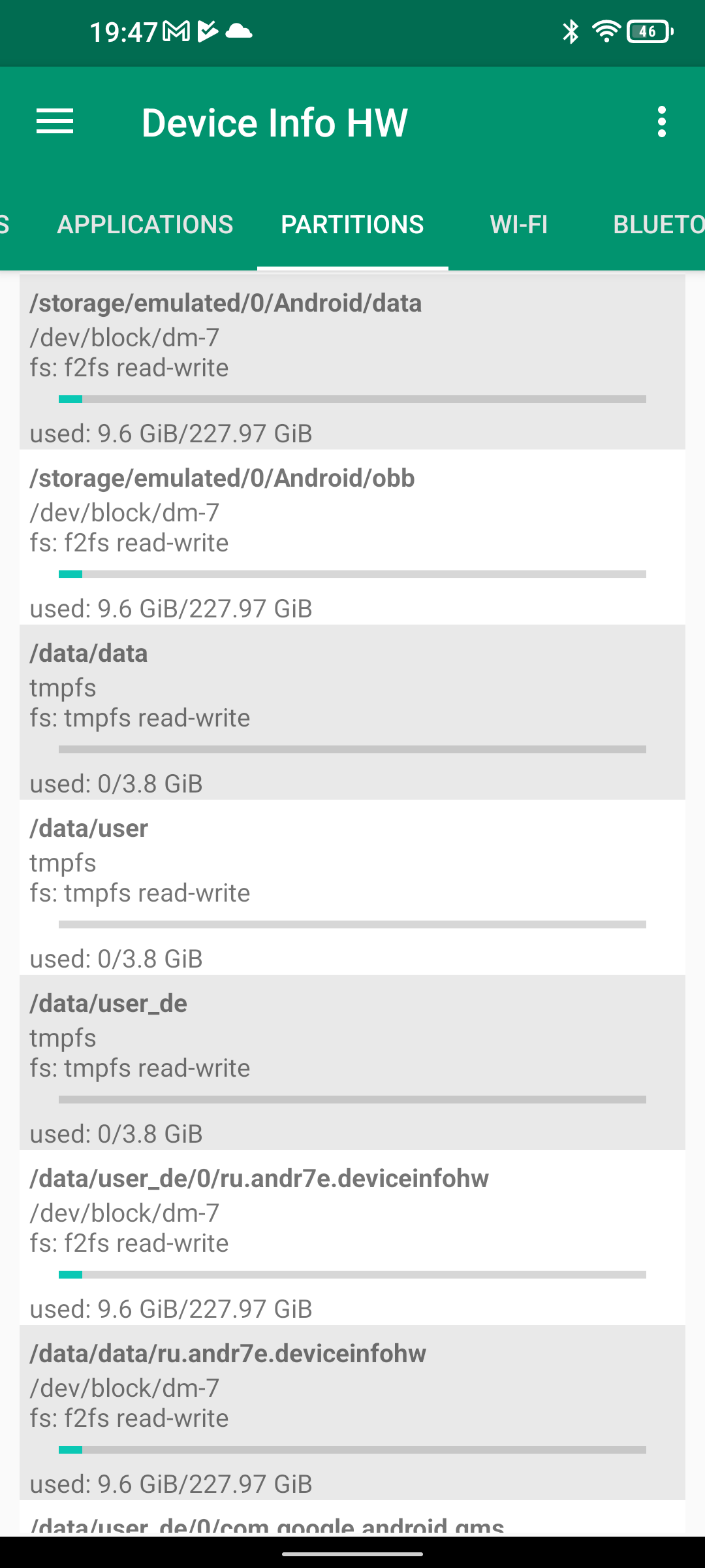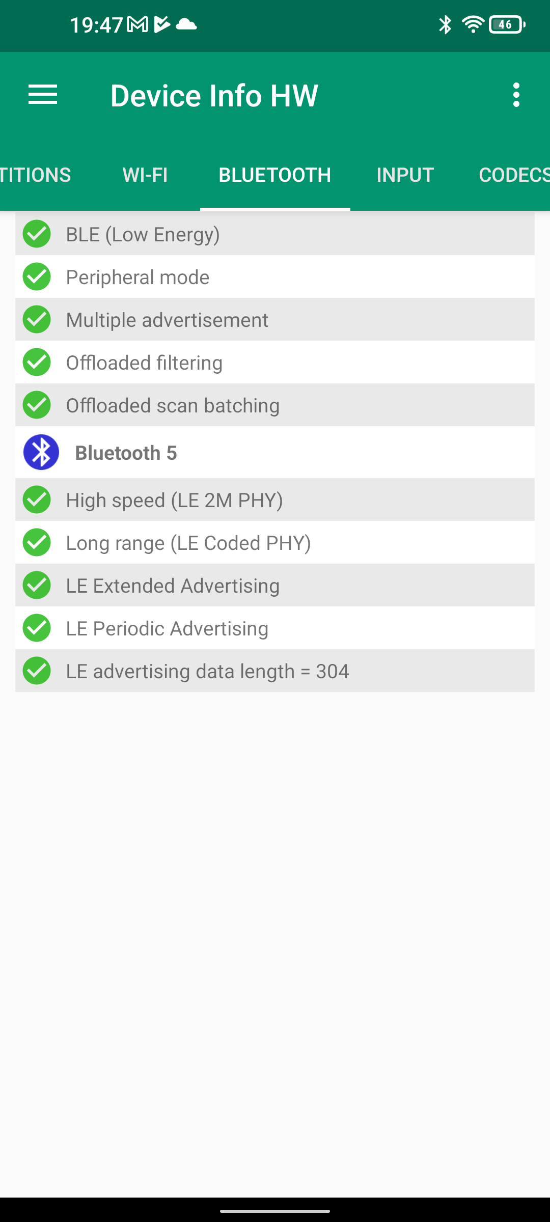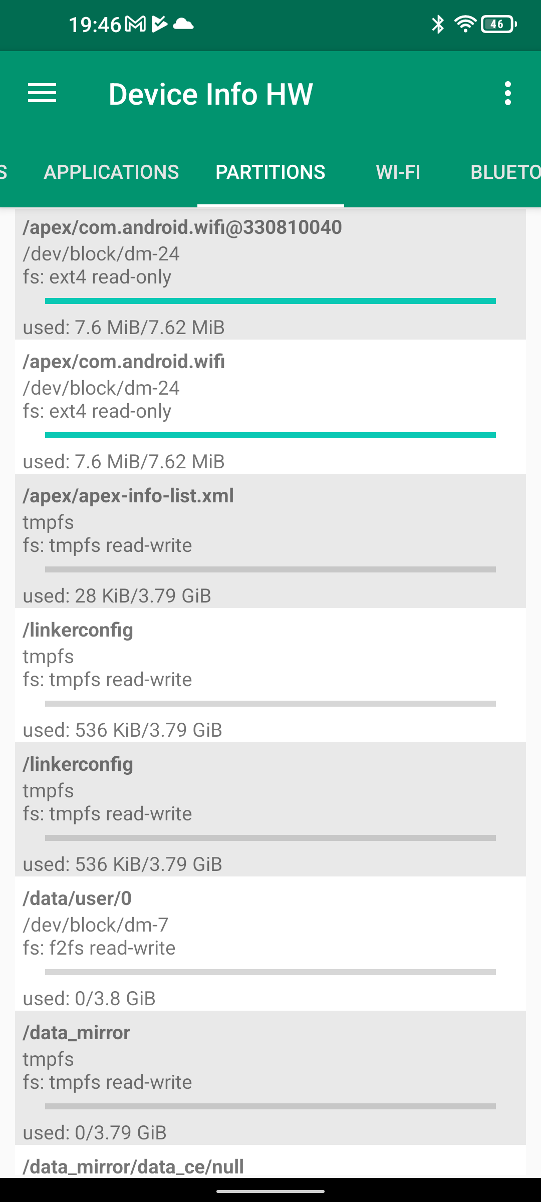 Les informations ci-dessous proviennent de l'application Device Info HW. L'application fournit des informations techniques détaillées sur le téléphone testé.Le Unihertz Tank tourne sur la même architecture que le Poco M5 mais je reviens sur ce point dans un des paragraphes suivants. Je n'avais pas reçu une fiche technique détaillée avec le téléphone, j'ai donc du fouiller un peu dans ses caractéristiques techniques pour comprendre de quoi il était composé. Le fait qu'il tourne sur la même architecture que le POCO implique qu'il partage les composants suivants: CPU, GPU, modem, puce wifi, puce gps,... A priori d'un point de vue technique il devrait donc avoir des performances assez similaires au POCO sauf que son énorme armure pourrait jouer un rôle dans la sensibilité au réseau mais ce point sera testé plus loin dans ce test également.