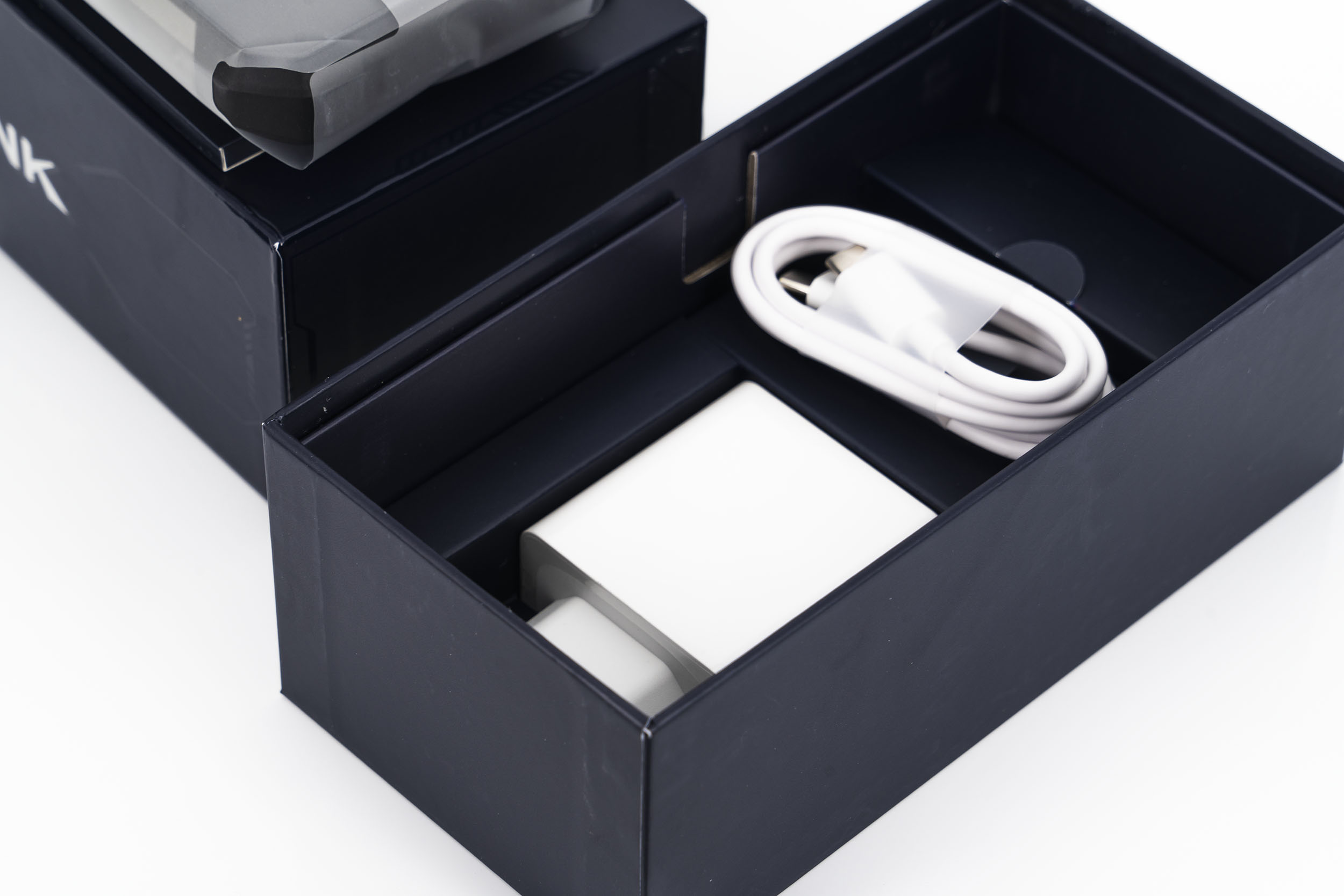 En acceptant de tester ce téléphone, je savais quel type de produit j'allais recevoir et je m'attendais à quelque chose de brutal jusqu'au niveau de l'emballage. Lorsque j'ai reçu le colis, le poids m'a surpris, c'est de très loin le téléphone le plus lourd que j'ai testé mais par contre quand j'ai ouvert l'emballage, j'ai été positivement surpris. La boite noire donne une impression de qualité et à l'intérieur de la boite c'est pareil, ce n'est pas un emballage typique pour un téléphone qui finira par trainer dans la boue.