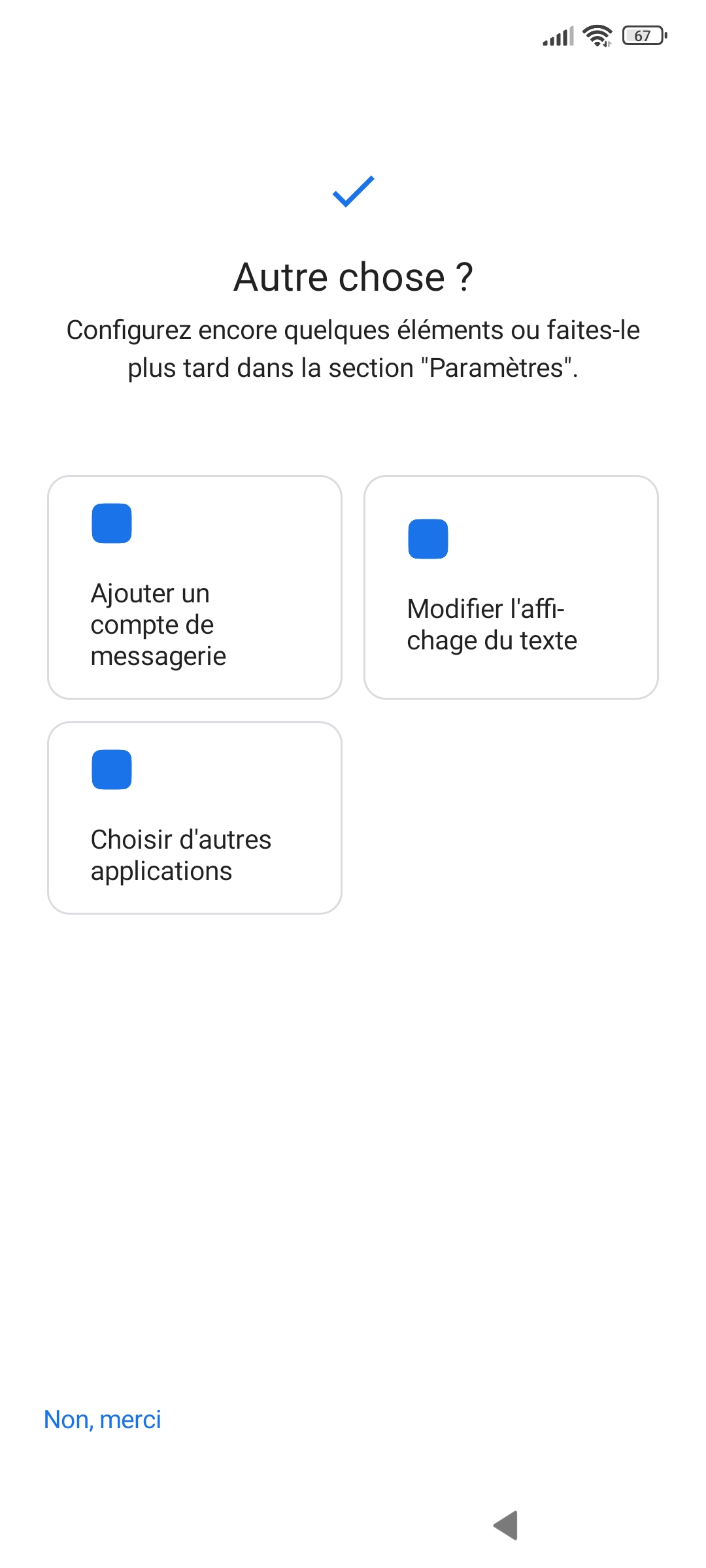 Le Redmi Note 12 tourne sous MIUI 14 qui se base sur Android 13. La configuration de départ est donc la même que pour tous les autres téléphones sous MIUI 14 avec juste quelques différences sur certains écrans. Si je retourne quelques années en arrière pour voir l’évolution de ces écrans, je me rends compte à quel point les téléphones d’aujourd’hui sont invasifs et essaient de vous inscrire à toutes sortes de choses. Google va forcer son assistant et Google Pay, Xiaomi va essayer de vous faire accepter la publicité en manipulant l’interface pour vous faire accepter des choses qui semblent innocentes en apparence.Je m’étais tellement habitué à tout ça mais comme je suis un peu remonté dans le temps en commençant cet article, j’ai pu comparer les écrans des premiers Redmi à celui-ci. Ce n’est plus la même chose du tout. Il est évidemment toujours possible d’éviter de devoir s’inscrire à tous ces services supplémentaires, il faut juste être un peu attentif et ne pas machinalement cliquer sur le bouton pour passer à l’écran suivant.