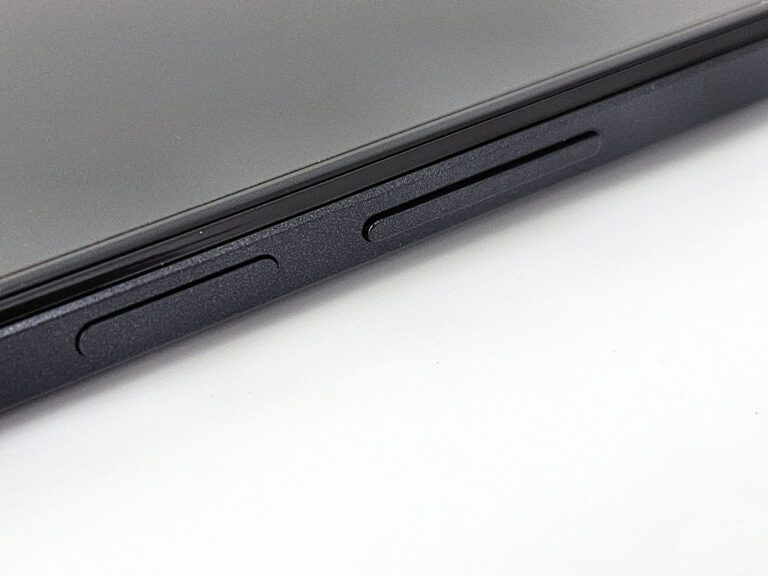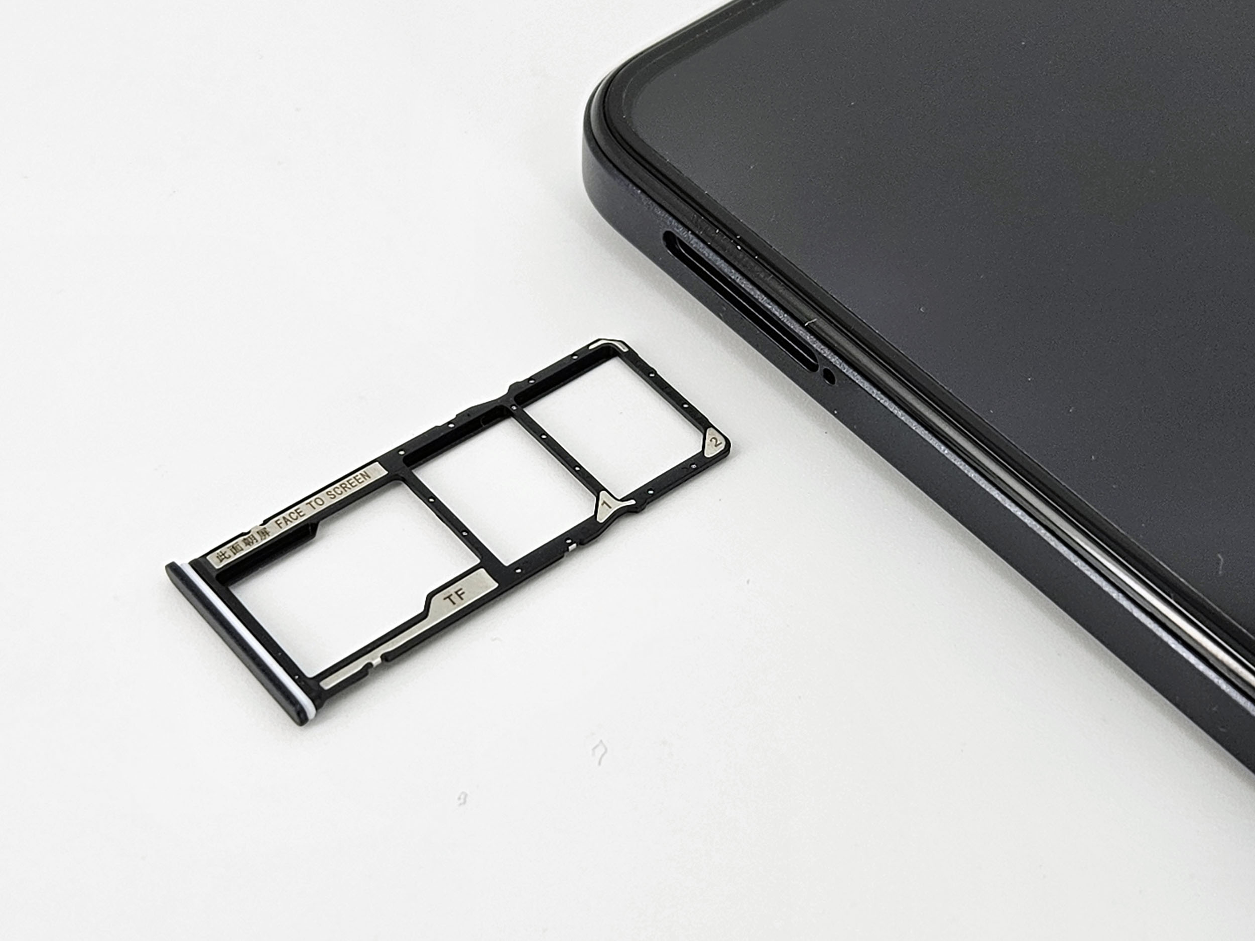 Sur le côté droit on retrouve les habituels boutons de volume et le bouton de démarrage qui est également équipé d’un capteur d’empreinte. De l’autre côté, on retrouve le tiroir sim qui se trouve à une place assez inhabituelle, il est très haut. L’avantage d’une position isolée comme celle-ci , c'est que vous ne risquez pas de mettre votre aiguille au mauvais endroit. Le tiroir sim est très grand, il permet l’utilisation de deux cartes sim et une carte mémoire en plus.
