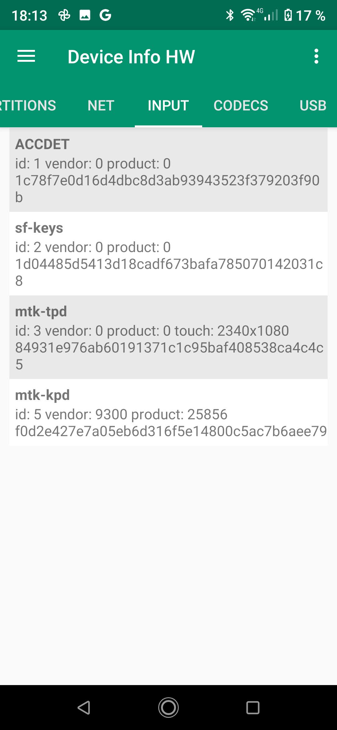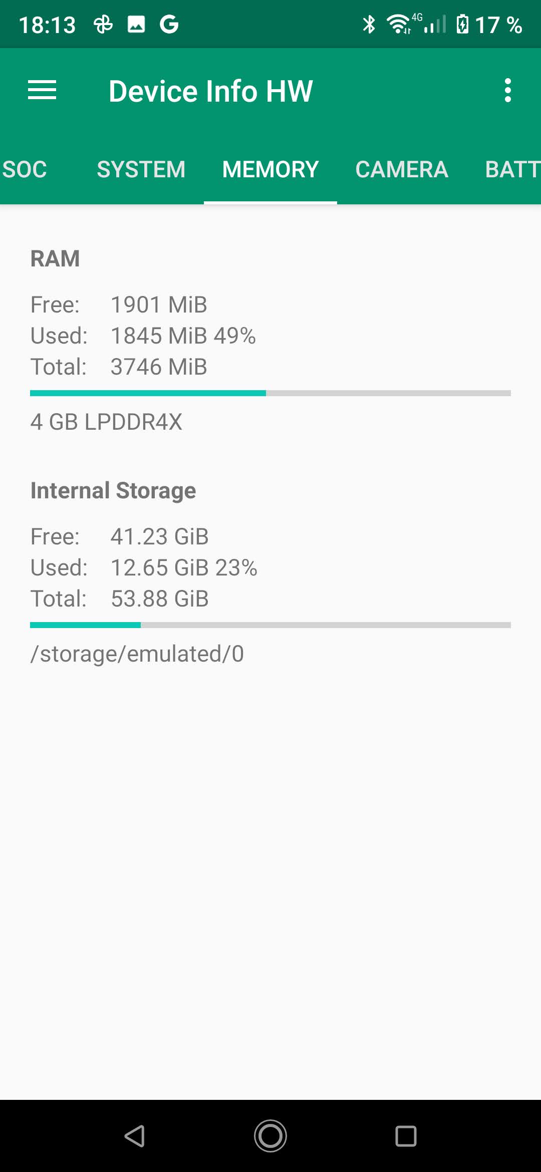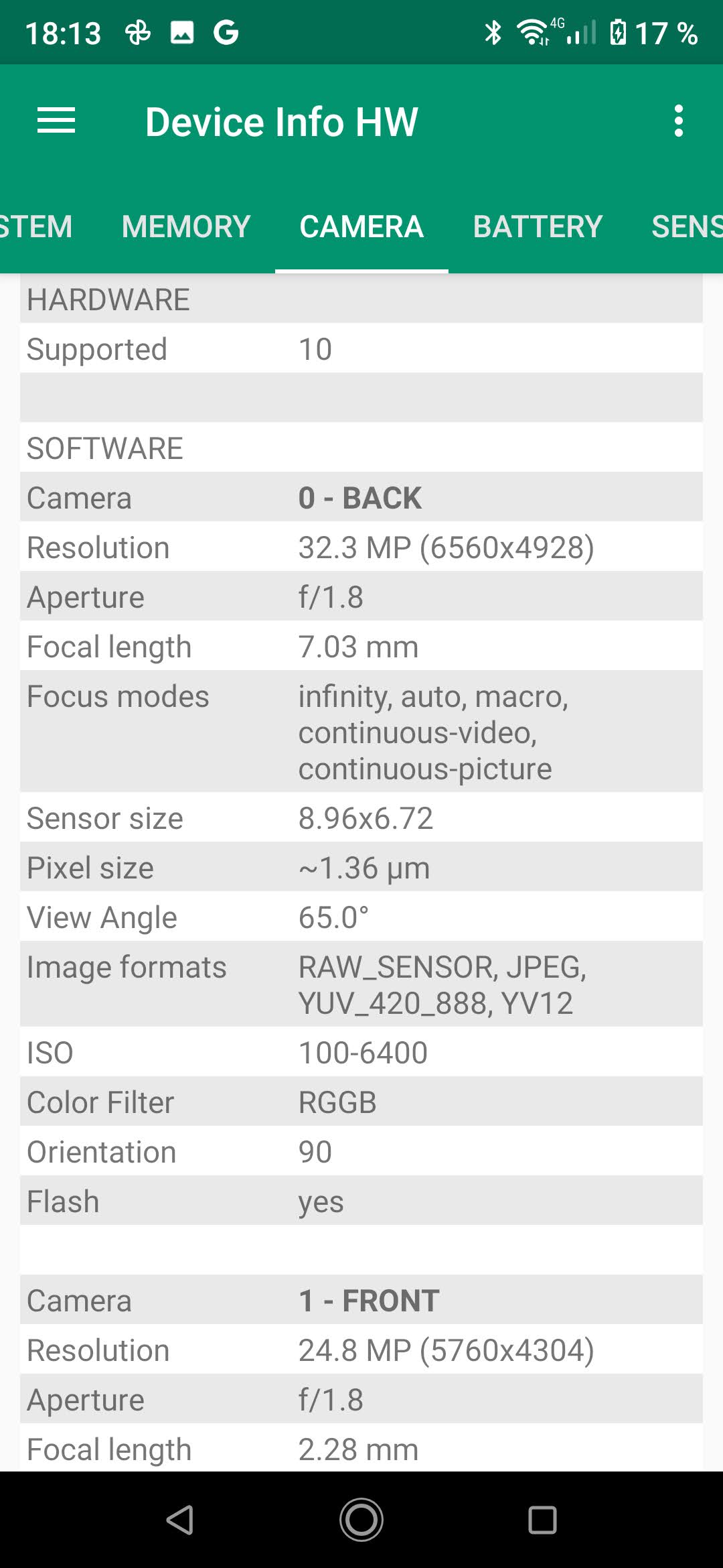 Les informations ci-dessous proviennent de l'application Device Info HW. L'application fournit des informations techniques détaillées sur le téléphone testé.J'ai acheté la version 4Gb / 64 Gb, les caractéristiques détaillées du Umidigi A9 Pro sont disponibles dans les captures d'écrans suivantes: