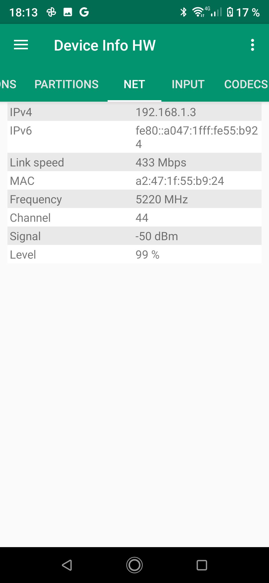 J'ai mesuré un signal de -24 dbm à proximité du routeur et un signal de -64 dBm à distance. Bien que le résultat ne soit pas mauvais, le Umidigi n'est pas dans les meilleurs téléphones pour la sensibilité wifi.