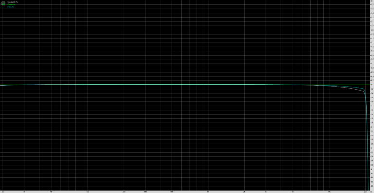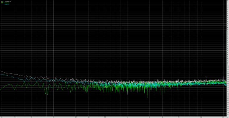 Ce test vise à tester la capacité de l’appareil à reproduire correctement toutes les fréquences. La ligne blanche au milieu du graphique est la situation idéale et les autres couleurs proviennent des tests sur différents téléphones. Une déviation de la ligne de référence indique un écart par rapport à la situation idéale. Pour voir un bon son sur toutes les fréquences il faut donc s’approcher le plus possible de la ligne de référence.