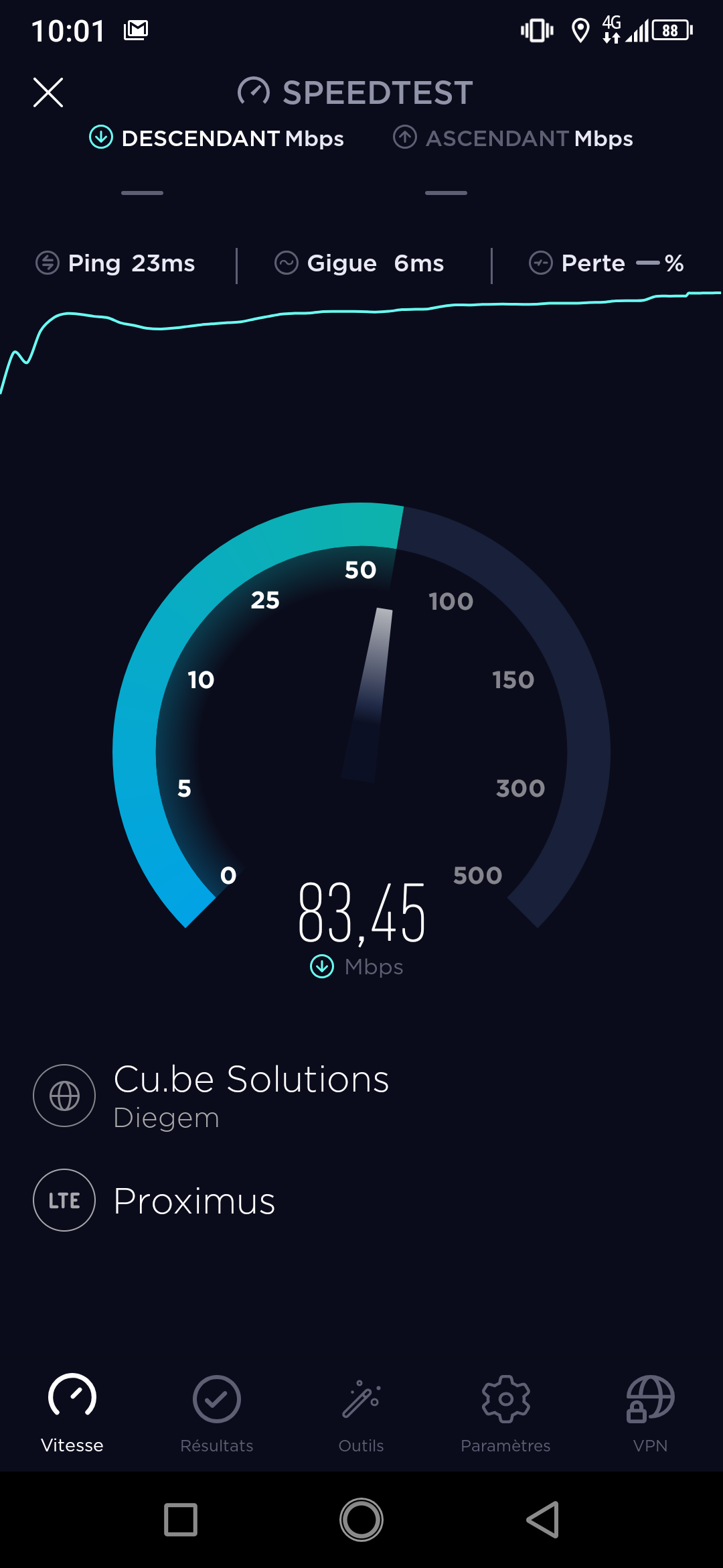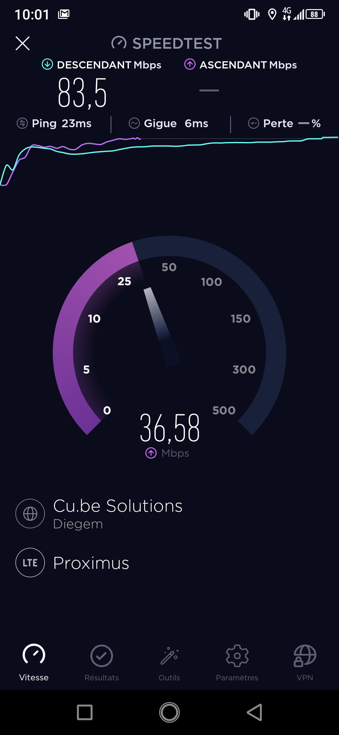 Le S3 Pro partage sans doute ses composants réseaux avec le Umidigi F1 car il obtient des scores très similaires. En download j'ai obtenu une vitesse aux alentours de 90Mbps et en upload je suis entre 35 et 40 Mbps. Ce score est largement suffisant pour la plupart des activités sur un smartphone, il est cependant nettement inférieur à ce que j'ai obtenu avec d'autres téléphones.