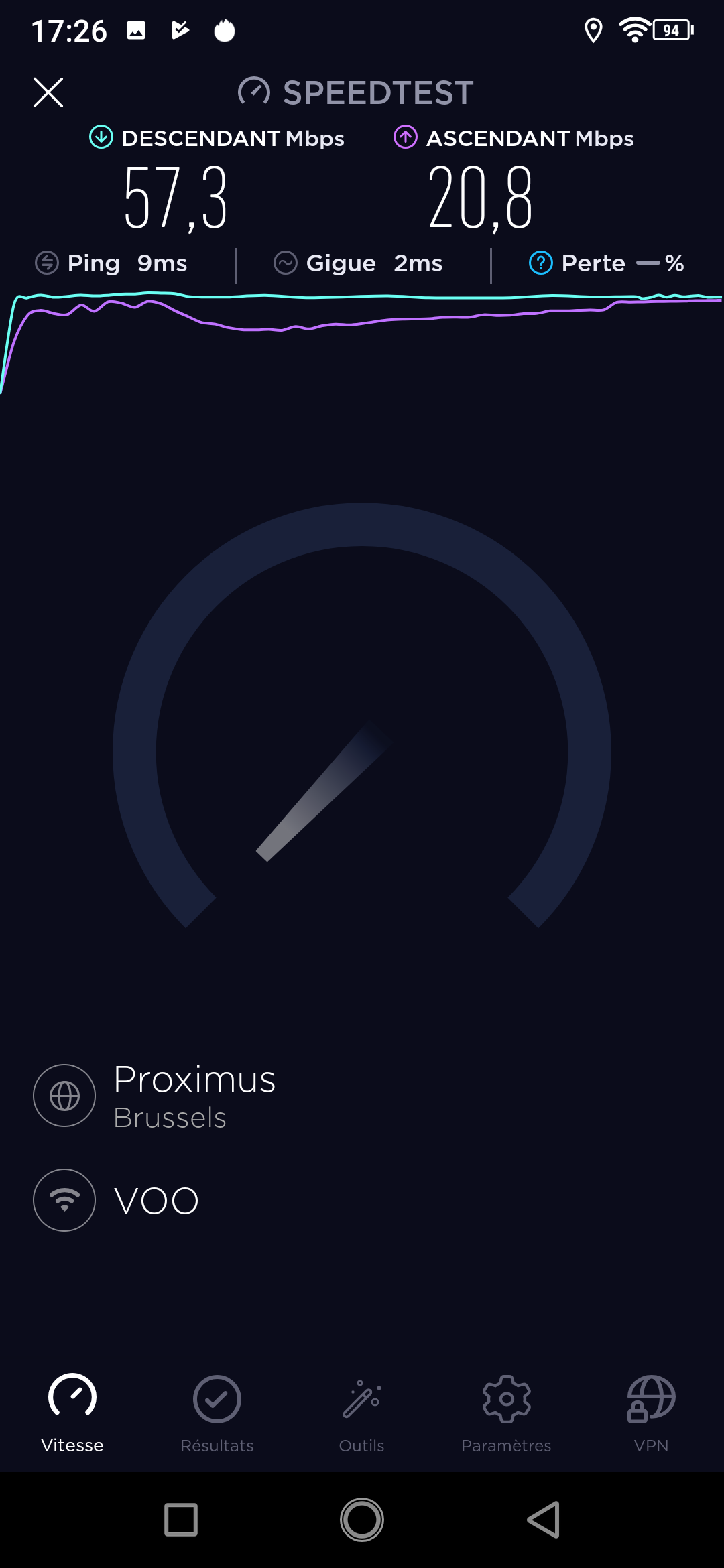 Comme le F1, le Umidigi S3 Pro ne supporte pas la fréquence 5Ghz en wifi et cela affecte grandement les performances par rapport à un téléphone qui supporte cette fréquence. J'ai obtenu une vitesse en download entre 50 et 60 Mbps en download et 22 en upload (limité par mon fournisseur d'accès).