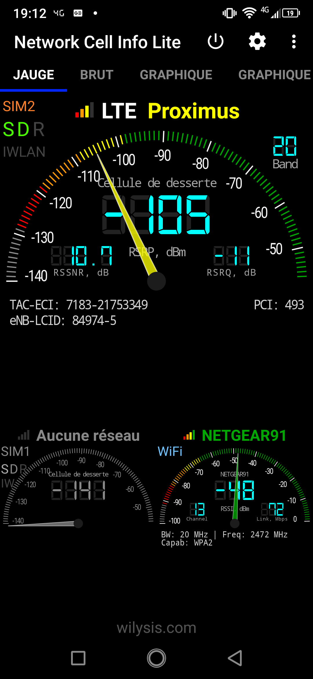 Pour tester la performance réseau, je mesure la puissance du signal sur chaque cellule visitée pour le test. Je compare ensuite ces valeurs avec les autres mesures des autres téléphones. Je ne dispose pas encore de suffisamment de mesures pour dire si un téléphone est bon ou pas mais ces premiers chiffres peuvent déjà donner une indication.
