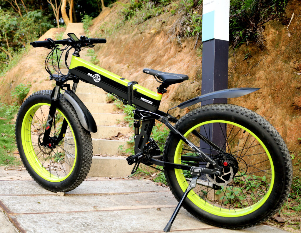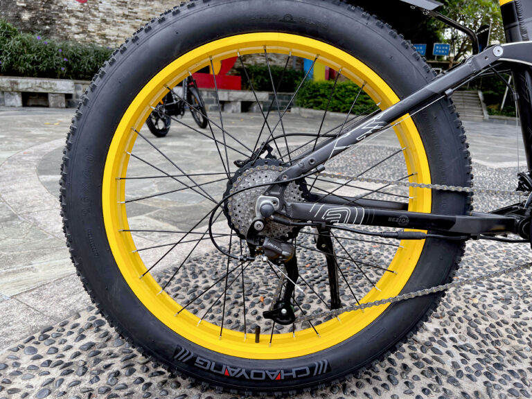 Le Bezior X1500 est équipée de roues de 26 pouces comme la plupart des vélos de ce type mais les pneus sont ici assez large (4 pouces) pour assurer un maximum d'adhérence sur terrain difficile.
