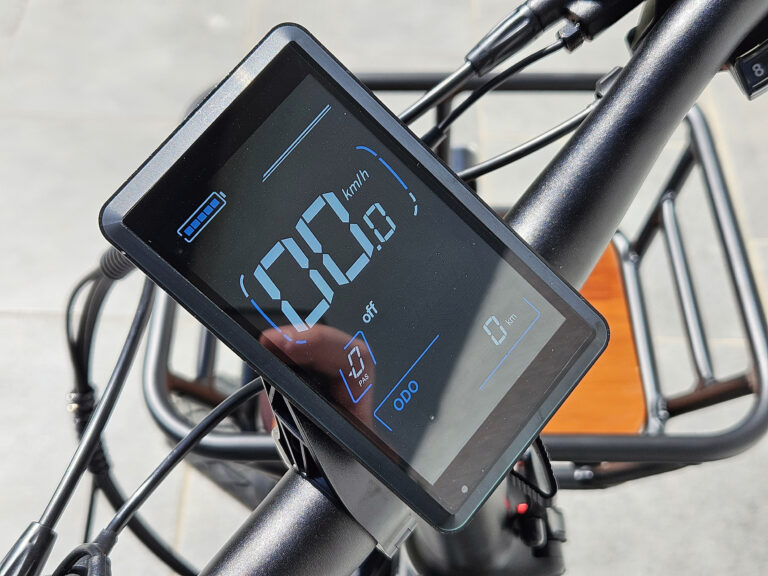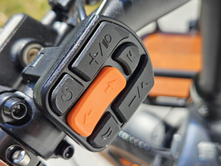 Le panneau de commande est différent de ce que j'ai pu voir jusqu'à présent. Vous pouvez évidemment allumer et éteindre le vélo, changer le niveau d'assistance, allumer les phares, utiliser le klaxon mais aussi actionner les clignoteurs qui se trouve en dessous du porte-bagage.