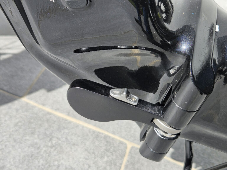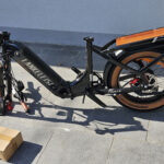 Avec un tel gabarit on oublierait presque que ce vélo est pliable. Pour plier le vélo il suffit de déverrouiller la manette et pousser sur le cadre pour le mettre en position pliée. Le processus est assez classique mais il ne faut pas sous-estimer le poid du vélo et le fait que la roue avant peut faire un tour complet sur elle-même.