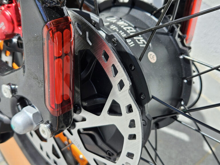 Les freins n'étaient pas une force chez Lankeleisi jusqu'à présent. Si ils étaient utilisés individuellement, la distance de freinage était beaucoup trop longue. Je note une nette amélioration de l'efficacité des freins sur ce vélo. La distance de freinage avec les freins utilisés individuellement est bien meilleure. La meilleure solution c'est évidemment l'utilisation des deux freins mais ce n'est ici pas une nécessité.