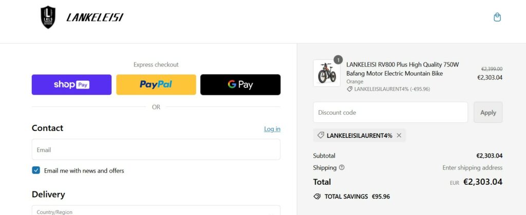 J'ai un coupon de réduction de 4% applicable en plus des promos existantes. Vous obtenez ainsi le prix le plus bas pour ce vélo tout en l'achetant sur le site officiel: