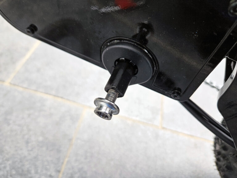 Le vélo est assez lourd, il pèse 35 kg, la puissance du moteur va donc jouer un grand rôle dans le confort et la facilité de roulage. Le moteur est un moteur unique de 750 watts capable de délivrer jusqu’à 1130 watts en nominal, je reviendrais sur ce point plus loin dans le test.