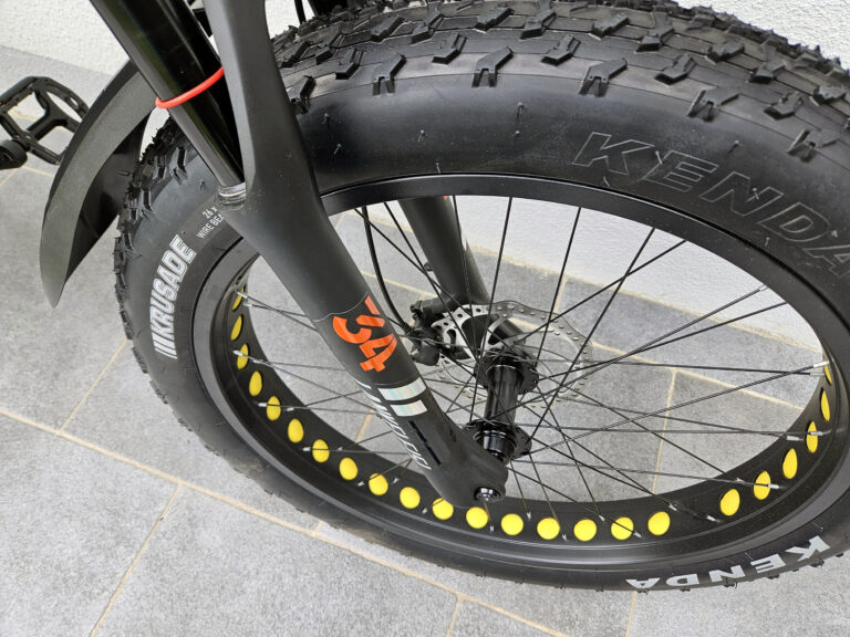 Les roues sont des roues de 26 pouces d’une épaisseur de 4 pouces, ce sont donc de gros pneus permettant de mieux absorber les chocs de la route et éviter de s’enfoncer trop rapidement.