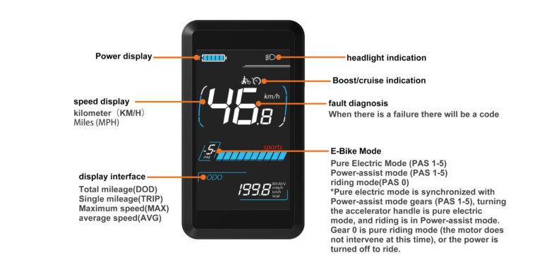 L’écran affiche évidemment les informations les plus importantes comme la vitesse, le niveau d’assistance, le kilométrage, etc