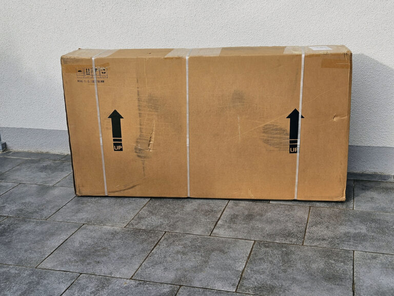 La boite du Lankeleisi X3000 Max est assez imposante et surtout très lourde, j'ai du assister le livreur à sortir la caisse du camion et la placer jusque dans mon couloir. Le vélo pèse à lui seul presque 40kg, avec la boite et les accessoires il faut sans doute compter 45 kg.