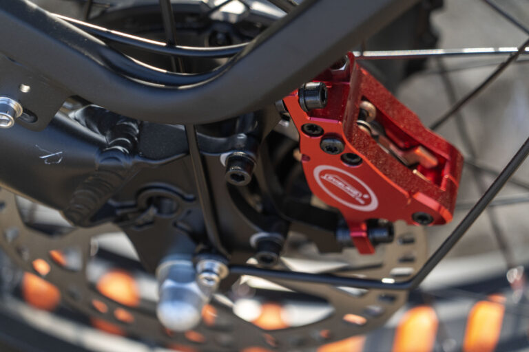 Le frein avant est par contre plus puissant et direct, la combinaison des deux freins permet un freinage rapide et efficace. Le freinage est un élément essentiel de ce vélo car avec la vitesse que vous pouvez atteindre et le poids du vélo (en plus du vôtre), vous devez pouvoir compter sur de bons freins. Je vous encourage donc à essayer les freins avant de vous lancer dans l'aventure pour être sûr de bien les maîtriser une fois sur la route. Si vous devez réagir vite à une situation, il faut pouvoir prendre la bonne décision et dans mon cas j'ai notamment le réflexe d'appuyer sur le frein à droite mais ce n'est pas une bonne idée. C'est peut être aussi le cas sur les autres fat bikes mais comme je l'ai déjà mentionné, c'est mon premier fat bike, je n'ai donc pas de point de comparaison pour ce type de vélo.