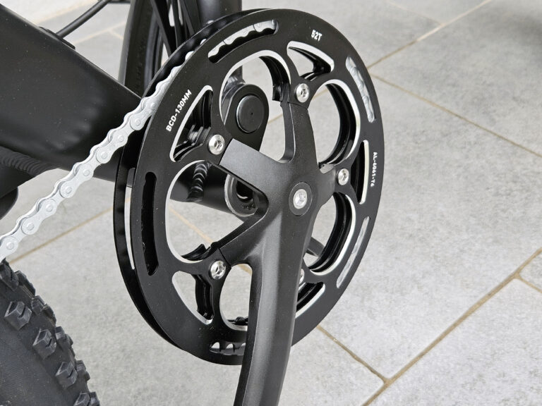 Le Lankeleisi X3000 Max est équipé d'un pédalier 52T et une cassette 14-28T ce qui aboutit à un développement de moins de 6 mètres à chaque tour de pédale. En comparaison avec mon vélo de course, c'est à peu près la moitié donc à chaque coup de pédale, le vélo de course parcoure 5 mètres de plus. Ça peut paraître énorme et c'est effectivement le cas mais ce n'est absolument pas un problème pour ce genre de vélo. Ce n'est pas un vélo que l'on achète pour faire du sport et de la performance, c'est tout le contraire même. L'assistance du moteur compense complètement ce déficit au niveau développement.