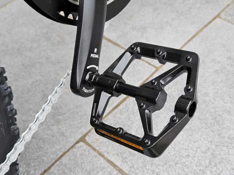J'ai par contre de nouveau une remarque pour les grandes tailles. Je chausse du 47 et si je pédale en utilisant la pointe des pieds, l'arrière de mon pied vient frapper le pied du vélo à gauche et le cadre du vélo sur la droite. De nouveau ici c'est une question d'habitude parce que je roule avec la pointe des pieds sur mon vélo de course mais ici je dois appuyer avec le milieu de mon pied sur les pédales sinon je vais me cogner le pied quelque part à l'arrière.