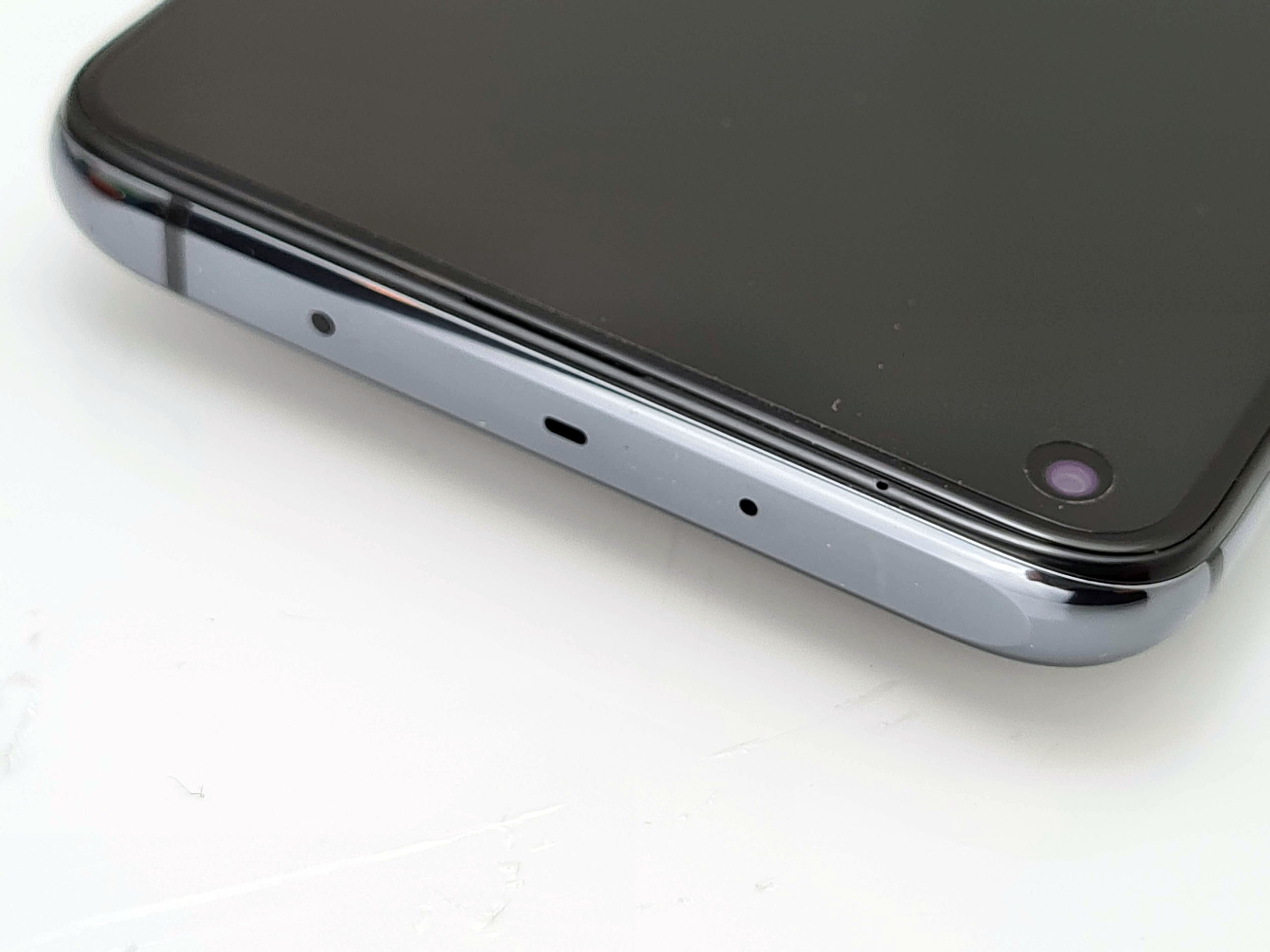 L'écran occupe 85% de la face avant, il est interrompu par l'appareil photo frontal qui se présente sous la forme d'un poinçon en haut à gauche, la bordure est assez fine mais Samsung parvient à produire des smartphones avec des bordures encore plus fines.