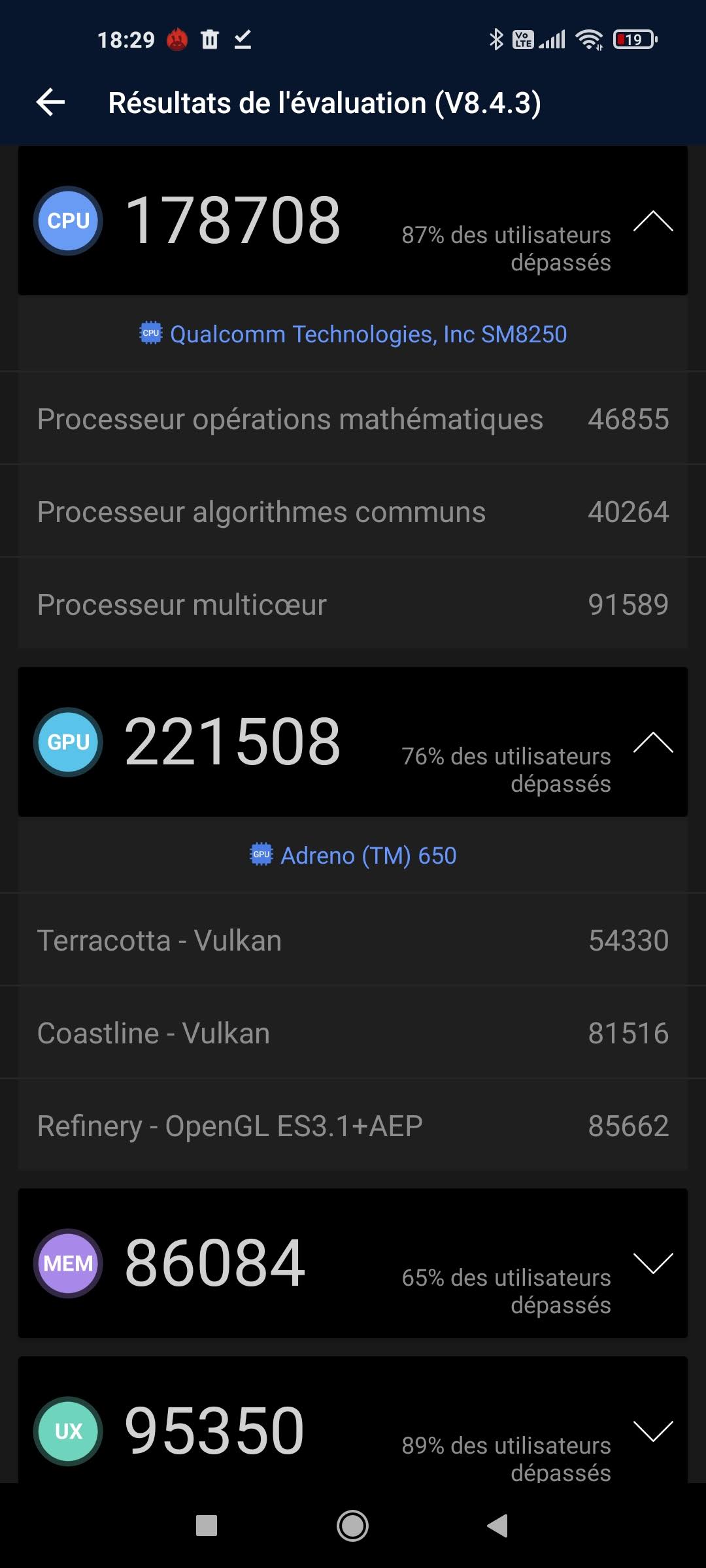 Pour la partie graphique, le Xiaomi Mi 10T Pro s'appuie sur un GPU Qualcomm Adreno 650 et ici aussi il s'agit d'un GPU haute performance.