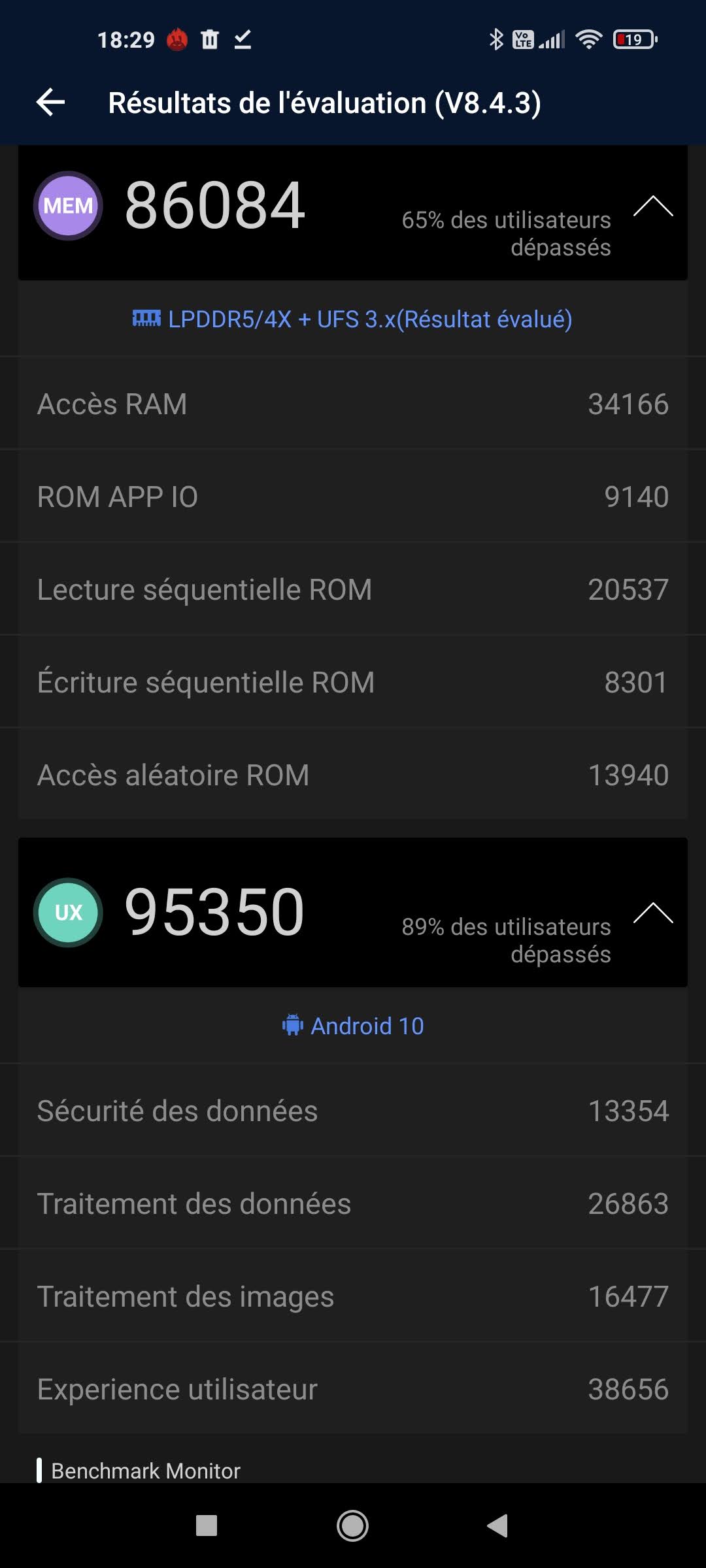 J'ai obtenu un score de plus de 581 000 points sur Antutu, c'est le meilleur score que j'ai obtenu jusqu'à présent. J'ai obtenu un score légèrement inférieur avec le Poco F2 Pro qui coute nettement moins cher.Avec un tel score, vous pourrez jouer à n'importe quel jeu ou lancer n'importe quelle application. Le téléphone s'appuie aussi sur 8Gb de mémoire RAM, vous pourrez donc non seulement laisser plus d'applications ouvertes mais la transition entre ces applications ne devrait pas poser de problèmes non plus.