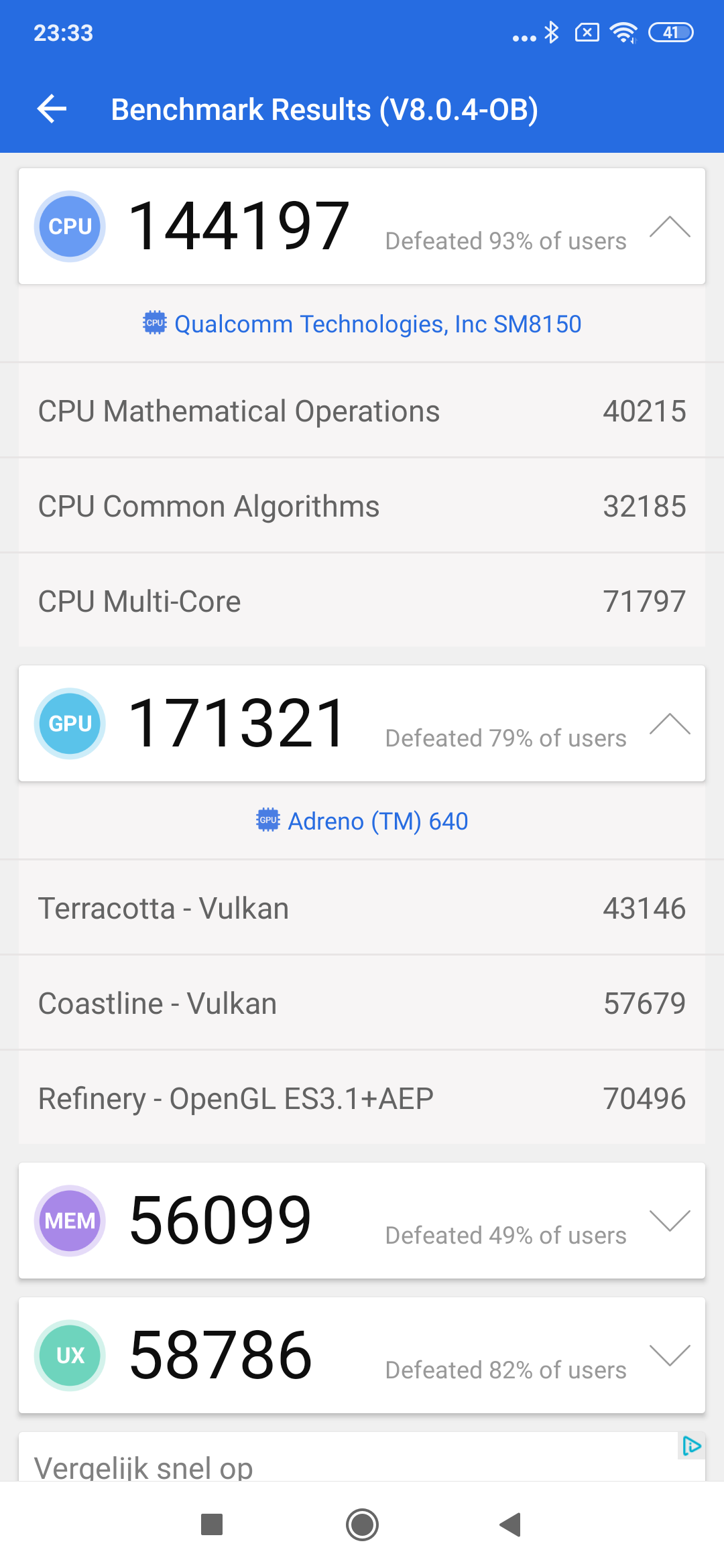 Au niveau performance, le Xiaomi écrase le Samsung, il offre 30% de puissance en plus. Je ne sais pas très bien ce que l'on peut faire avec ces 30% mais les gamers trouveront surement leur bonheur avec ce genre de téléphone.