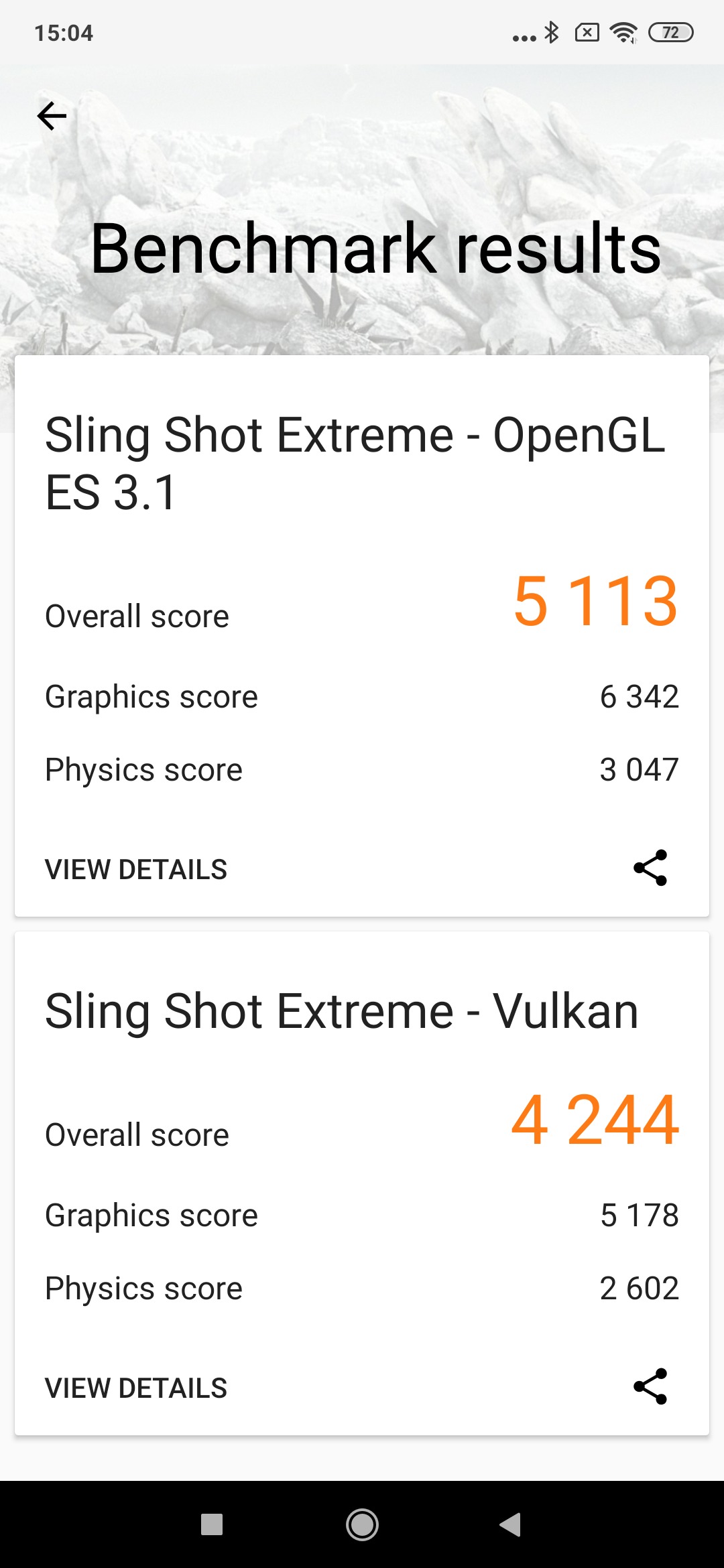 Avec 3DMark, j'obtiens également un score incroyable avec 5113 points pour OpenGL et 4244 pour Vulkan. Ici aussi le Xiaomi Mi 9T Pro fait mieux que le Samsung.
