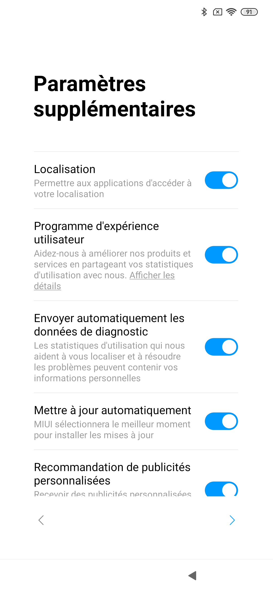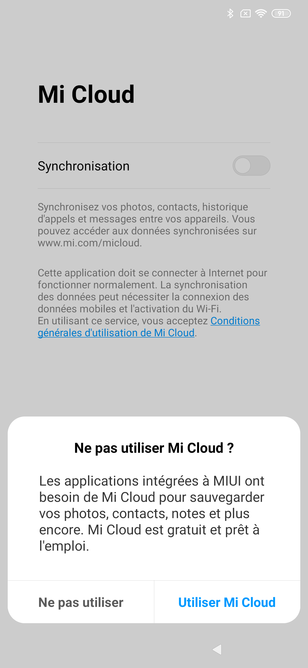 La première configuration du Xiaomi Mi 9T Pro suit le même déroulement que les autres Xiaomi que j'ai pu tester ces derniers mois mais Xiaomi a introduit une petite variante pour pousser son service de cloud. Le responsable de ce service était sans doute un peu en retard par rapport à son objectif et il a sans doute voulu le pousser un peu plus dans la procédure de démarrage. Si vous ne voulez pas vous inscrire au cloud de Xiaomi, vous devrez le refuser à plusieurs reprises.