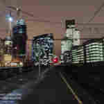 Utiliser un zoom optique pour la photo de nuit n'est en principe pas une bonne idée mais je trouve que le résultat est plutôt bon. Je n'ai pas bougé cette fois et on voit que le capteur est capable de capturer de nombreux détails malgré le lissage. On aperçoit presque le détail du mobilier dans les immeubles.
