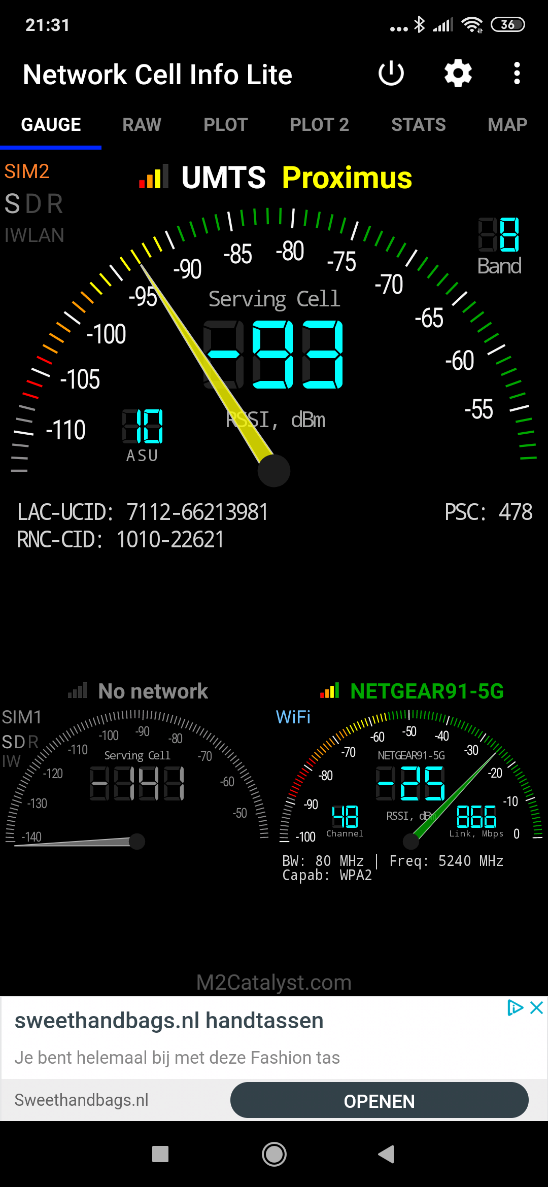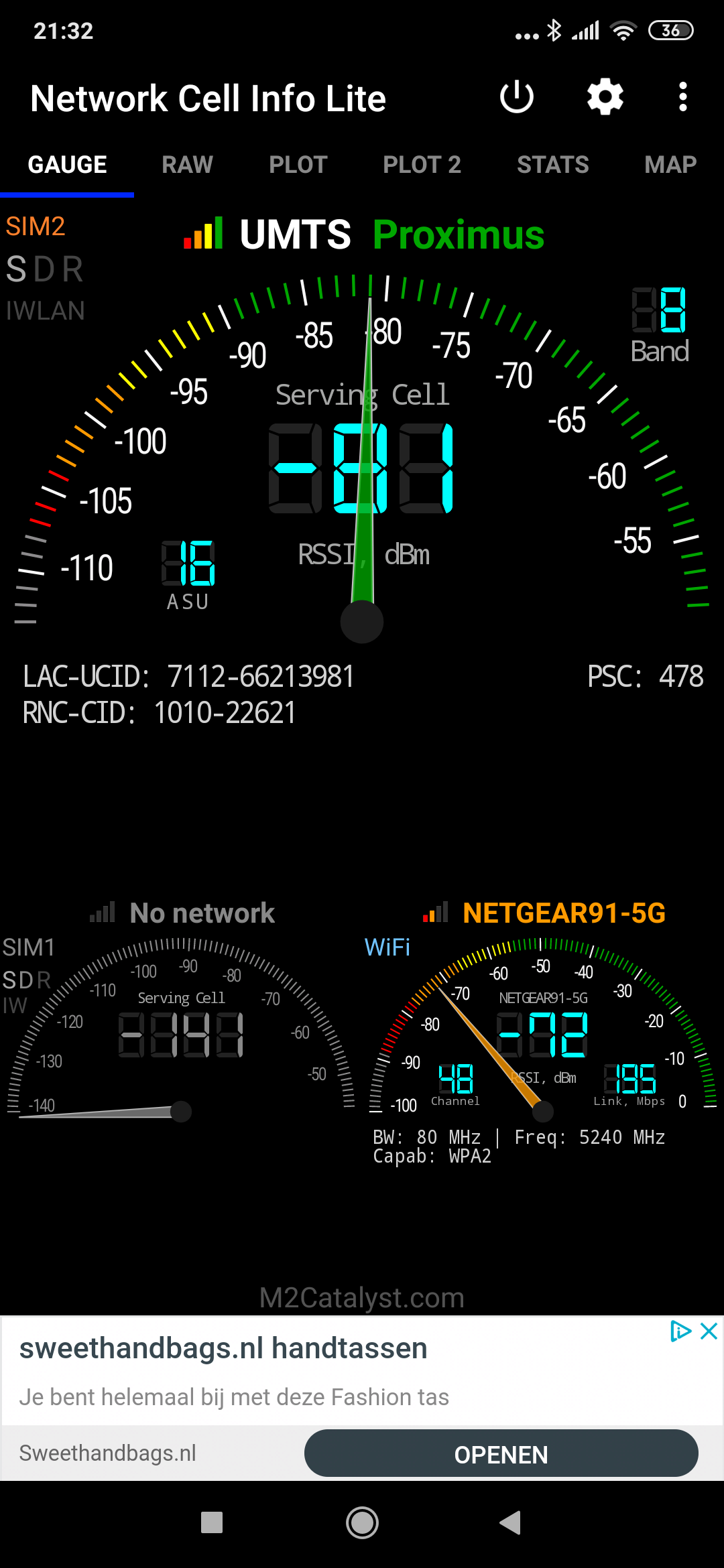 De tous les téléphones que j'ai testé, c'est le Mi 9T Pro qui obtient le meilleur résultat avec une avance très confortable car j'ai obtenu un signal moyen de -88 dBm. Alors est-ce que ce téléphone est le meilleur pour capter le réseau? Peut-être mais je dois apporter un complément d'information. Pour mes autres tests, j'avais utilisé un abonnement Proximus pour effectuer mes mesures mais j'utilise désormais une carte prépayée Proximus. Je pense que l'accès au réseau est différent en prépayé car j'ai obtenu beaucoup plus de mesures en 3G qu'avec les autres téléphones.