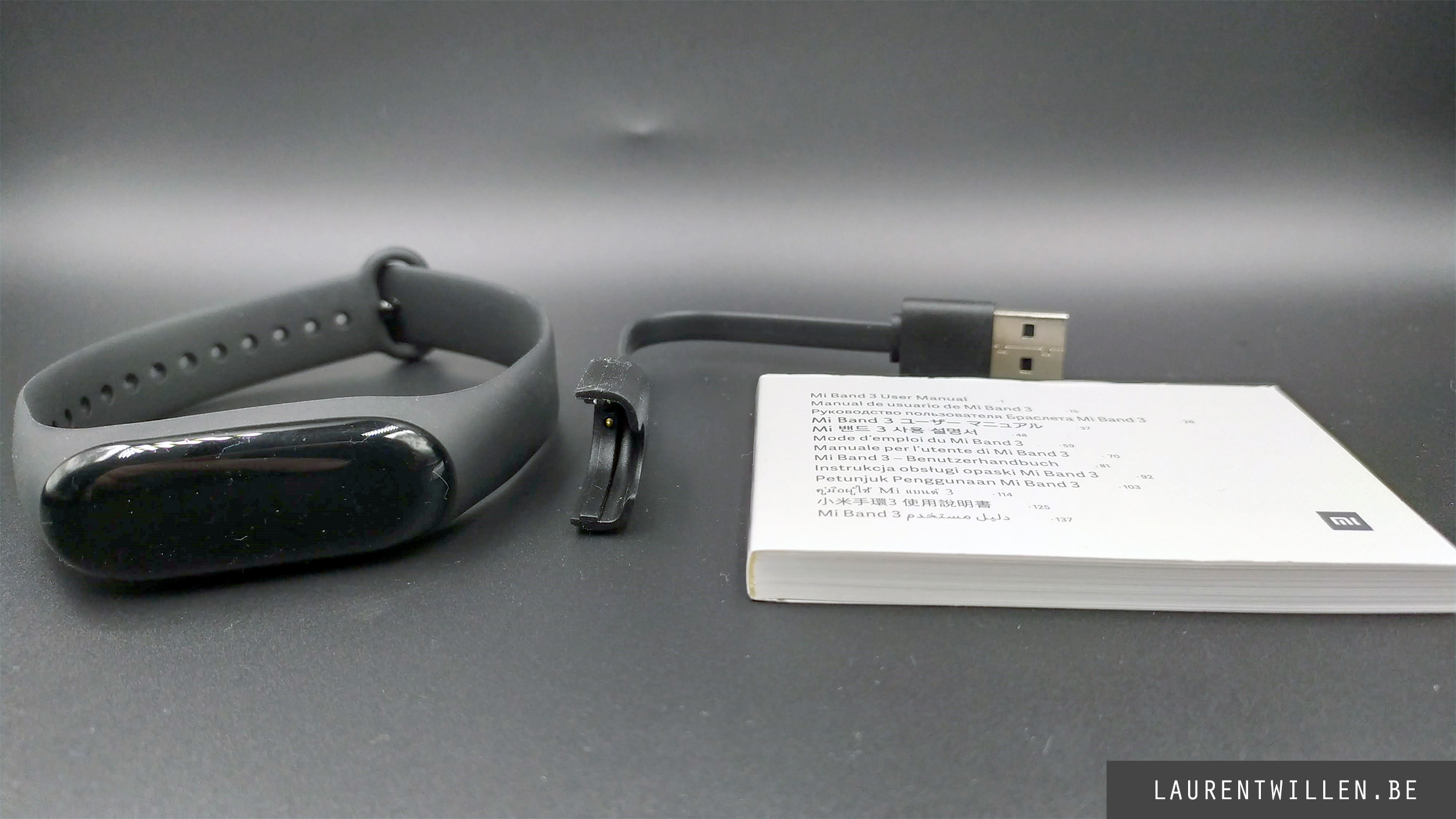 L'emballage de mon Mi Band 3 est arrivé en mauvais état mais le contenu était intact, la boite ne contient d'ailleurs pas grand chose: le bracelet, un gros manuel et une poignée de recharge. Le bracelet est ultra léger et dispose de suffisamment de trous pour tenir à n'importe quel poignet. Une fois mis au poignet, on ne le sent même plus tellement il est léger. Pour le recharger il faut détacher le Mi Band de son bracelet et l'attacher à un chargeur adapté qu'il faut connecter à votre ordinateur.