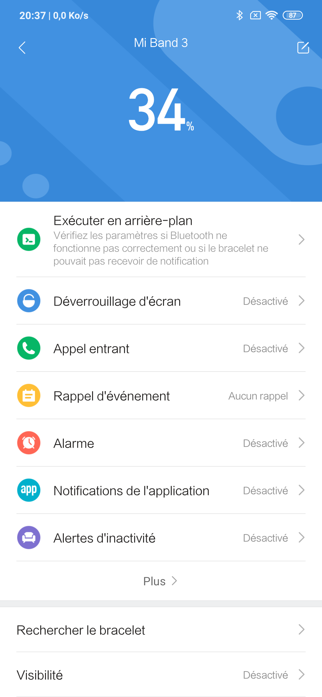 Pour pleinement profiter de votre bracelet connecté, il vous faudra une application comme MiFit proposée par Xiaomi. Cette application est totalement gratuite, il n'y a pas d'abonnement ou achat ni de publicité, rien que ça c'est déjà un point positif par rapport à tout ce que l'on trouve sur le Play Store. Avec MiFit vous pouvez suivre votre activité quotidienne en mesurant le nombre de pas, les distances estimées, les calories brulées et les pulsations cardiaques. Pour ces activités, la montre fonctionne en totale autonomie et se synchronise avec votre smartphone lorsque qu'il se trouve à proximité.