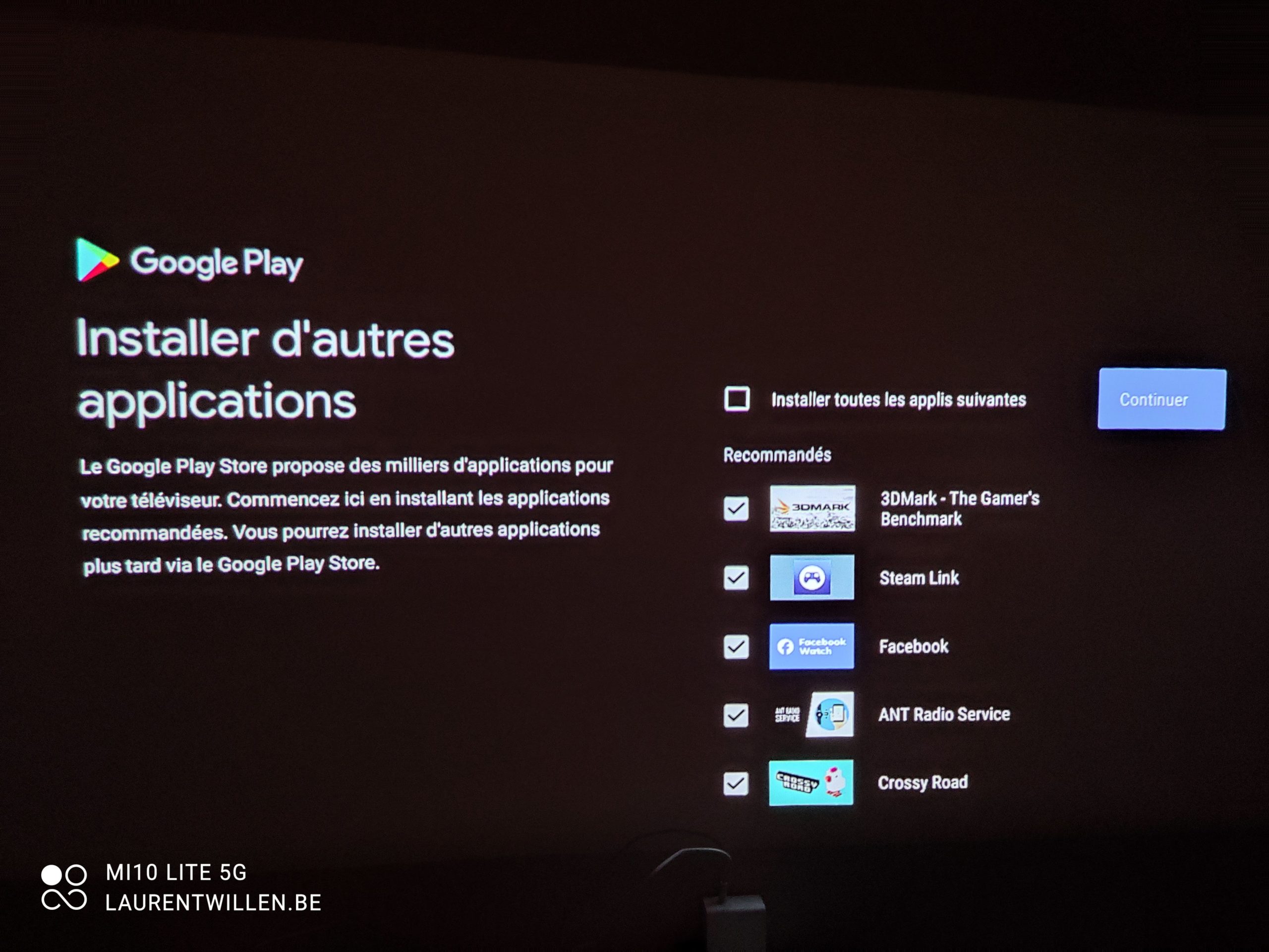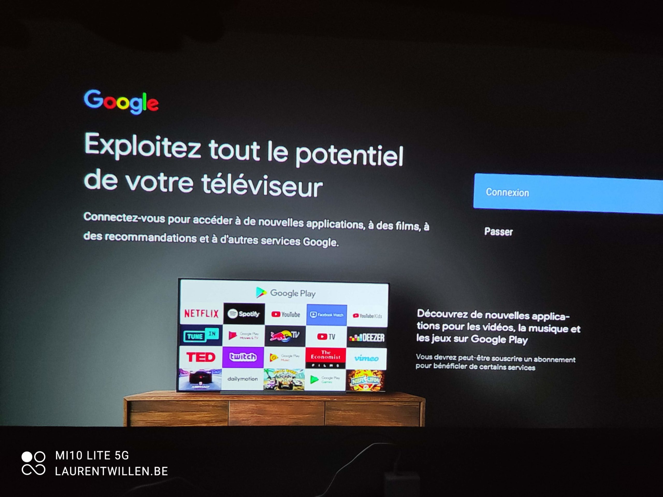 Le branchement sur un projecteur est aussi simple que celui d'une TV mais ici par contre, les ports USB sont bien souvent localisé à proximité des ports HDMI. J'ai branché le Mi TV Stick sur un projecteur tournant sous Android, cela n'a pas beaucoup de sens mais je n'avais pas d'autres projecteurs sous la main.
