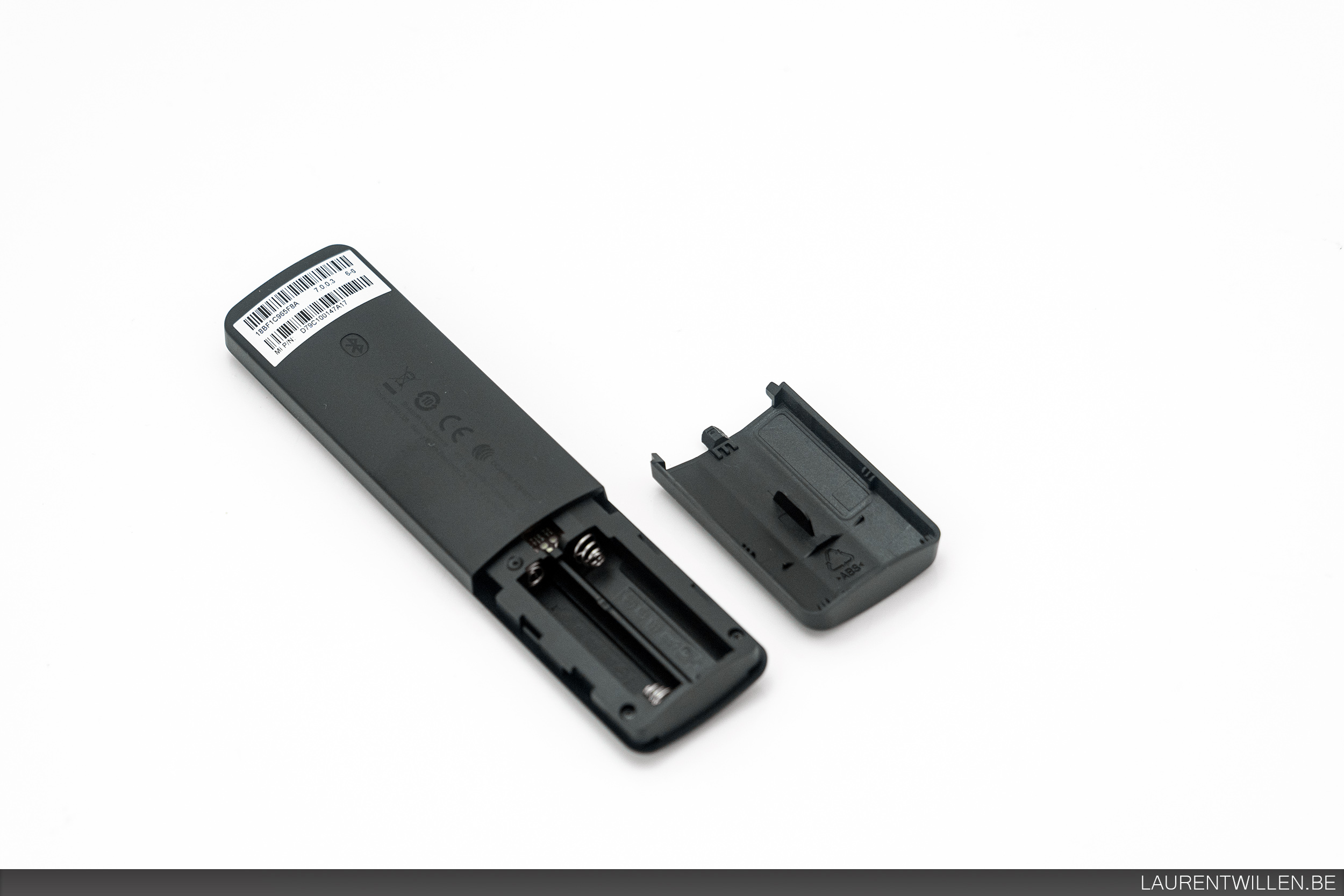 La télécommande est assez complète sans être complexe, il faudra juste veiller à retenir la fonction des boutons car comme elle n'est pas éclairée, il faudra retrouver les boutons au toucher. La télécommande propose également des raccourcis vers l'assistant vocal de Google, Netflix ou Amazon Prime