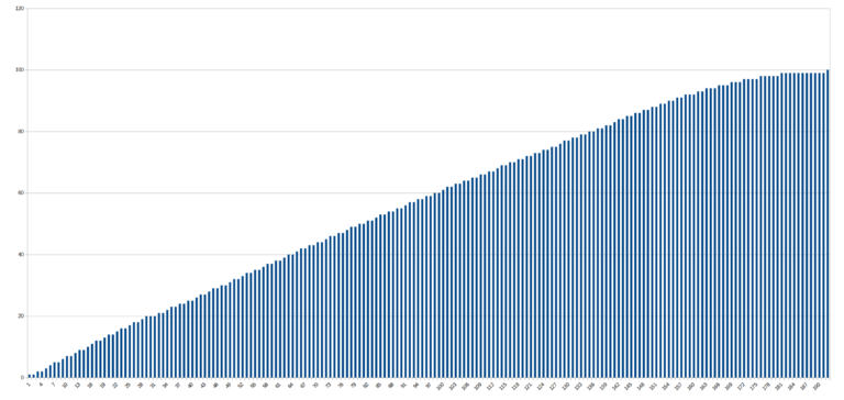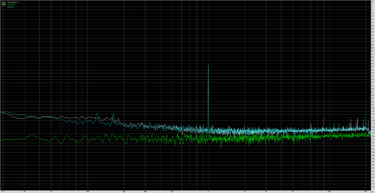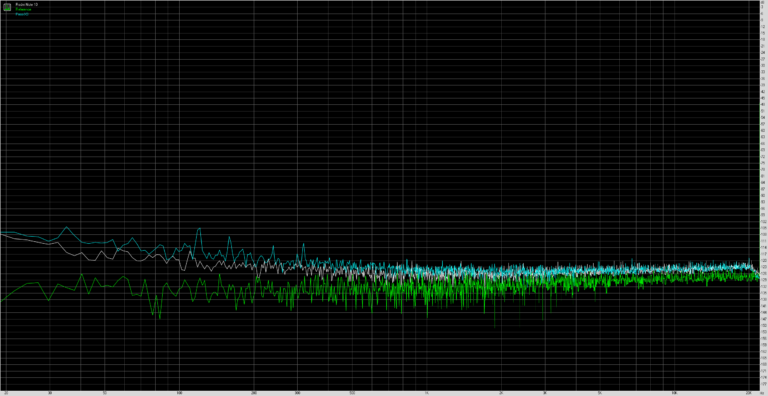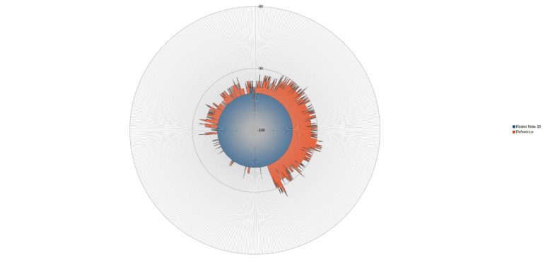 Ce test vise à tester la capacité de l’appareil à reproduire correctement toutes les fréquences. La ligne blanche au milieu du graphique est la situation idéale et les autres couleurs proviennent des tests sur différents téléphones. Une déviation de la ligne de référence indique un écart par rapport à la situation idéale. Pour voir un bon son sur toutes les fréquences il faut donc s’approcher le plus possible de la ligne de référence.