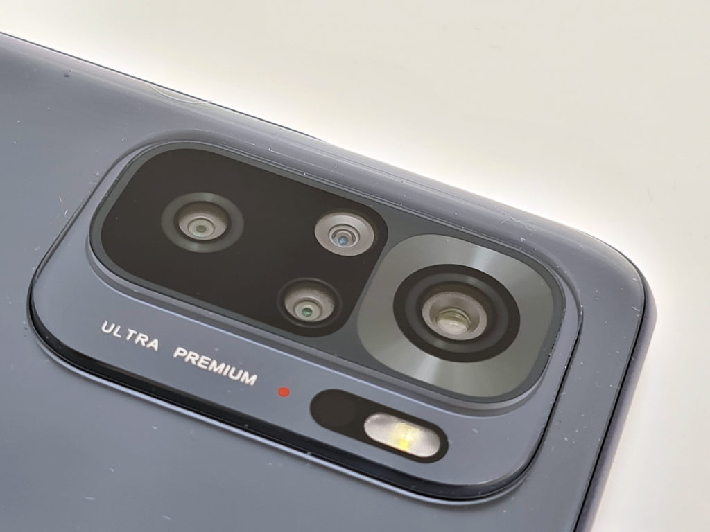 L'appareil photo est également bien mieux intégré que sur le Redmi Note 9, c'est la première fois que je teste un Redmi Note de ce type avec un appareil photo aussi bien intégré. Le bloc contenant les capteurs photos n'est pas trop imposant malgré la présence de 4 capteurs. L'inscription "ultra premium" semble confirmer cette volonté d'amener ce téléphone vers un niveau de finition plus élevé.