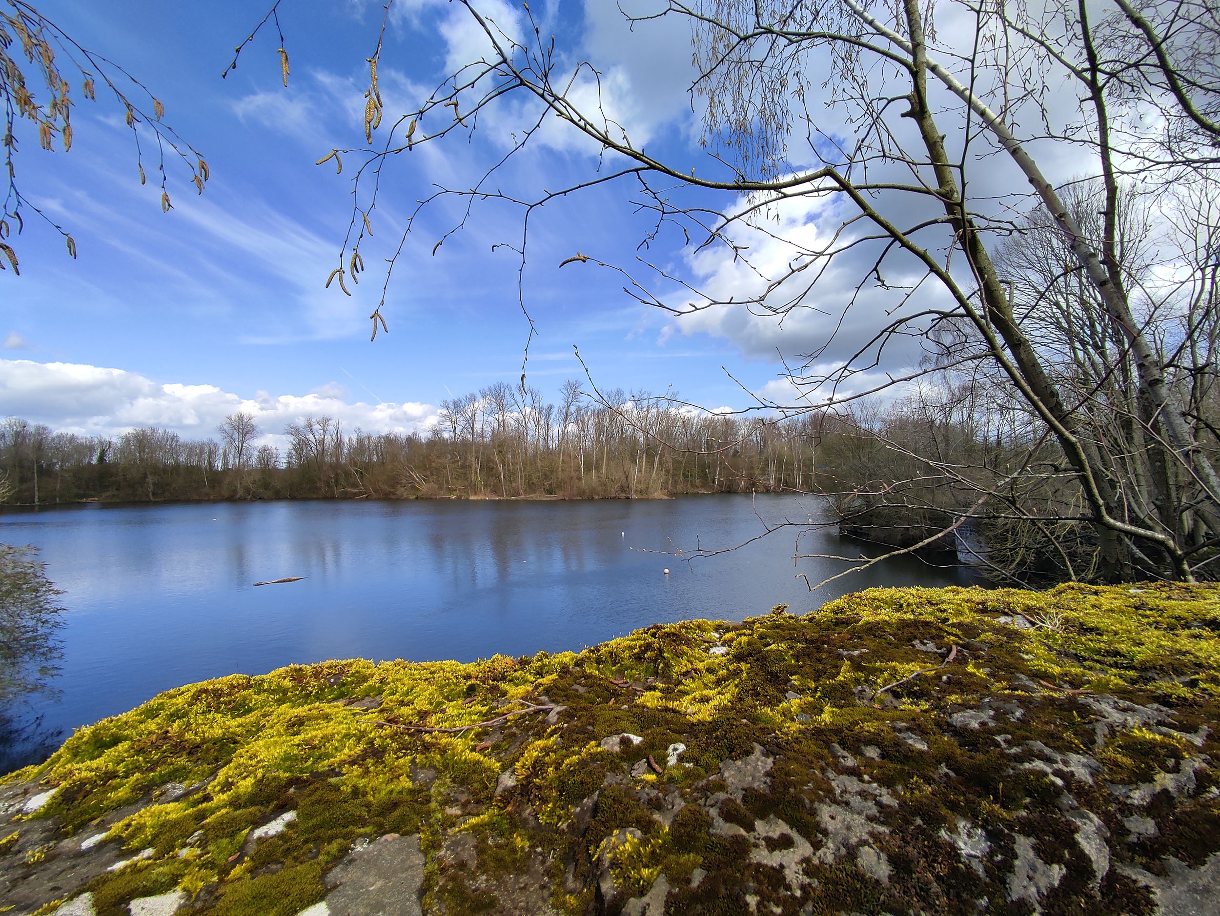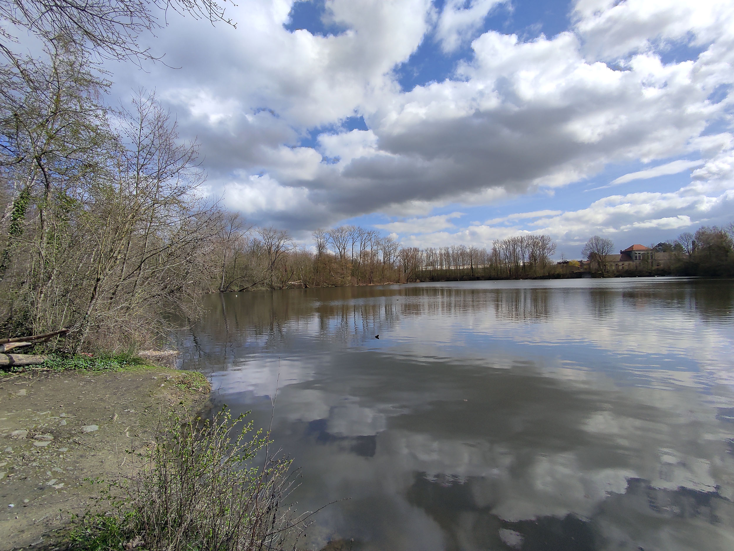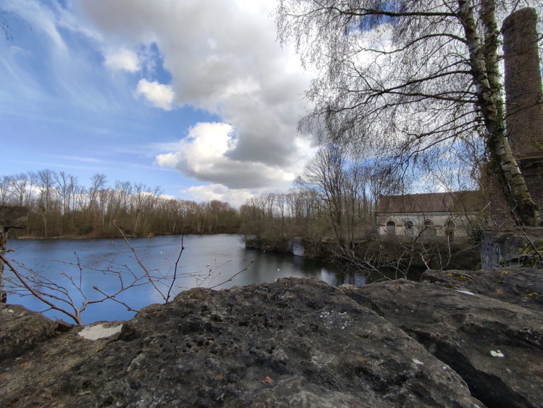 Cette photo comporte des zones sombres et des zones claires et c'est le genre de situation que les capteurs ultra grand angle n'aiment pas trop, le résultat est pourtant vraiment bon. La photo est non seulement bien éclairée mais les couleurs sont naturelles et le niveau de détail est correct. Évidemment la photo est de moins bonne qualité qu'avec le capteur principal mais il faut vraiment faire attention pour voir les défauts. Les nuages sont par exemple surexposés et le contour est moins net, le tronc d'arbre en avant plan est lissé et perd en détails, je vois aussi de l'aberration chromatique en périphérie.