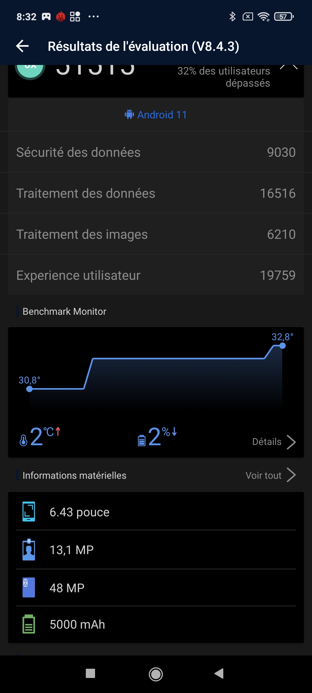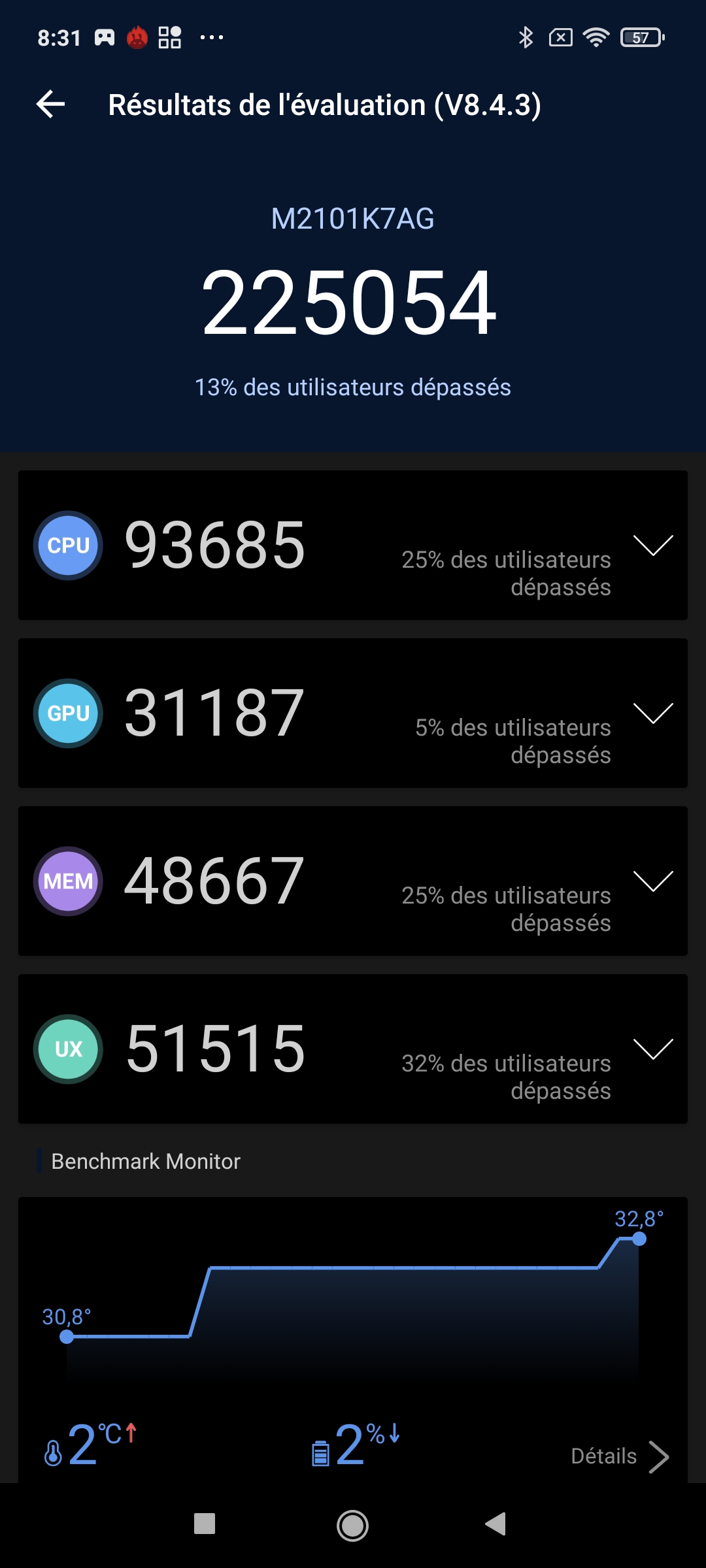 J'ai obtenu un score de 225 000 points avec Antutu, je m'attendais à une performance plus élevée mais ce score représente une augmentation de performance de 20% par rapport à la génération précédente. C'est surtout au niveau GPU que l'évolution est moins importante car au niveau CPU, le Redmi Note 10 obtient un score très proche du Redmi Note 10 Pro. Quoiqu'il en soit, cette augmentation de 20% de performance va permettre au Redmi Note 10 de lancer la plupart des jeux (avec parfois un niveau de graphisme moins élevé) et les taches du quotidien ne poseront certainement pas de problèmes.Gaming