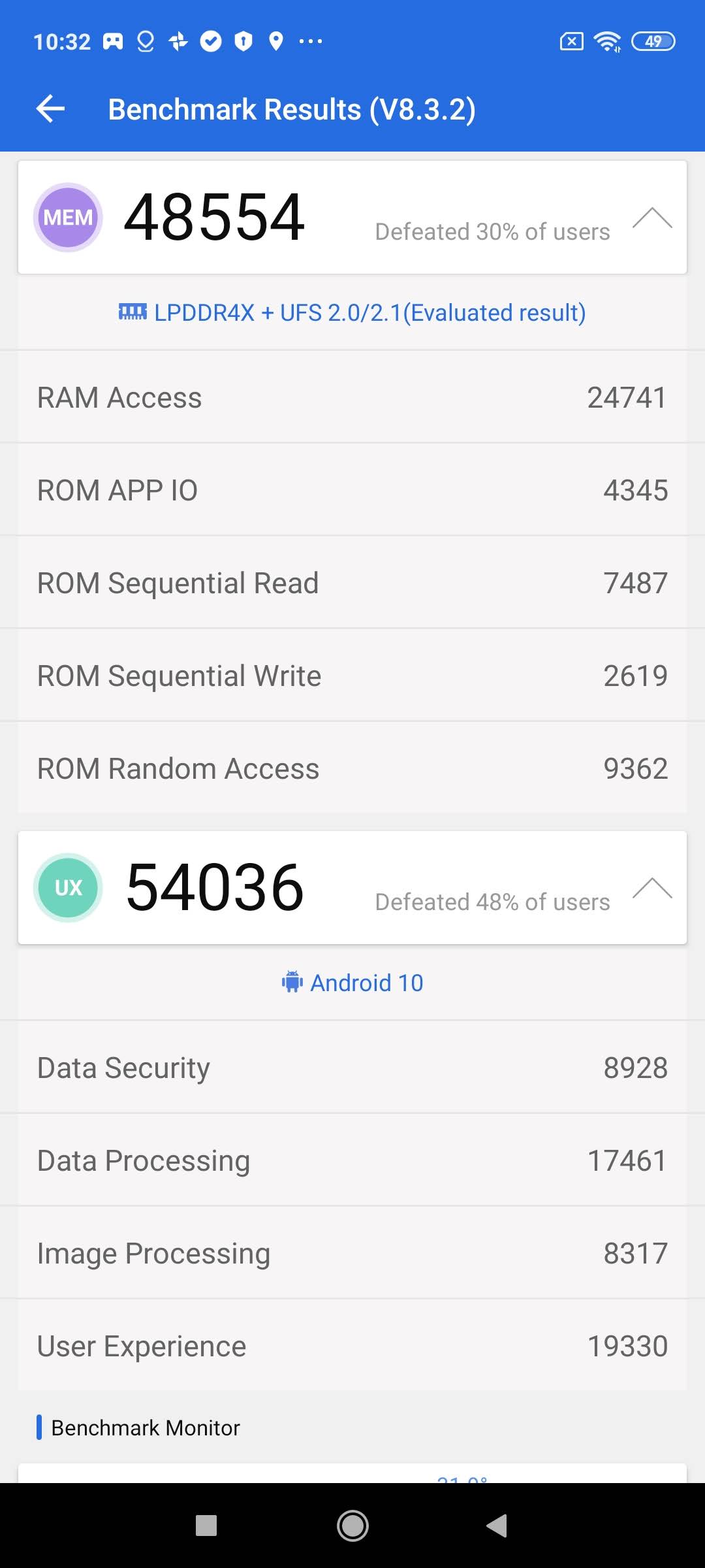 Xiaomi a généralement une performance mémoire moins élevée que la concurrence mais ce n'est plus le cas avec ce Redmi Note 9s, il dépasse d'ailleurs largement le Redmi Note 8 Pro.