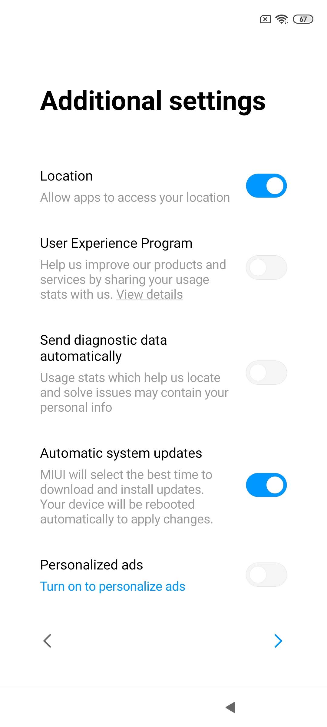 Le Redmi Note 9s est commercialisé avec MIUI 11 et la procédure de démarrage a été légèrement adaptée. Le premier changement concerne les conditions générales et les règles concernant la vie privée, vous allez devoir accepter des conditions spécifiques à Xiaomi en plus de celles de Google. C'est la première fois que je vois ça chez Xiaomi.Le reste de la configuration est assez similaire à ce qui se fait sur d'autres appareils, seul la configuration du capteur d'empreinte latéral a été déplacé tout à la fin après la configuration des comptes mails.