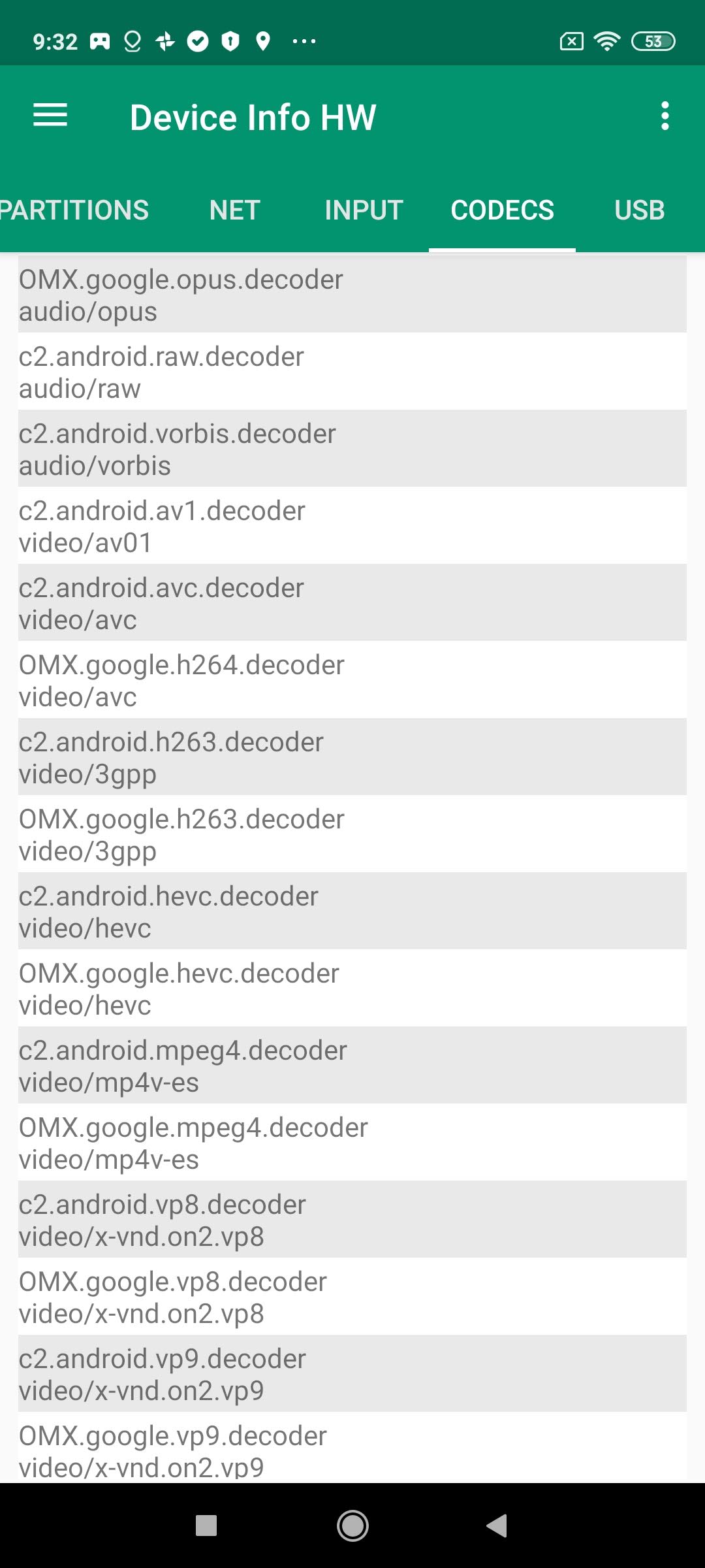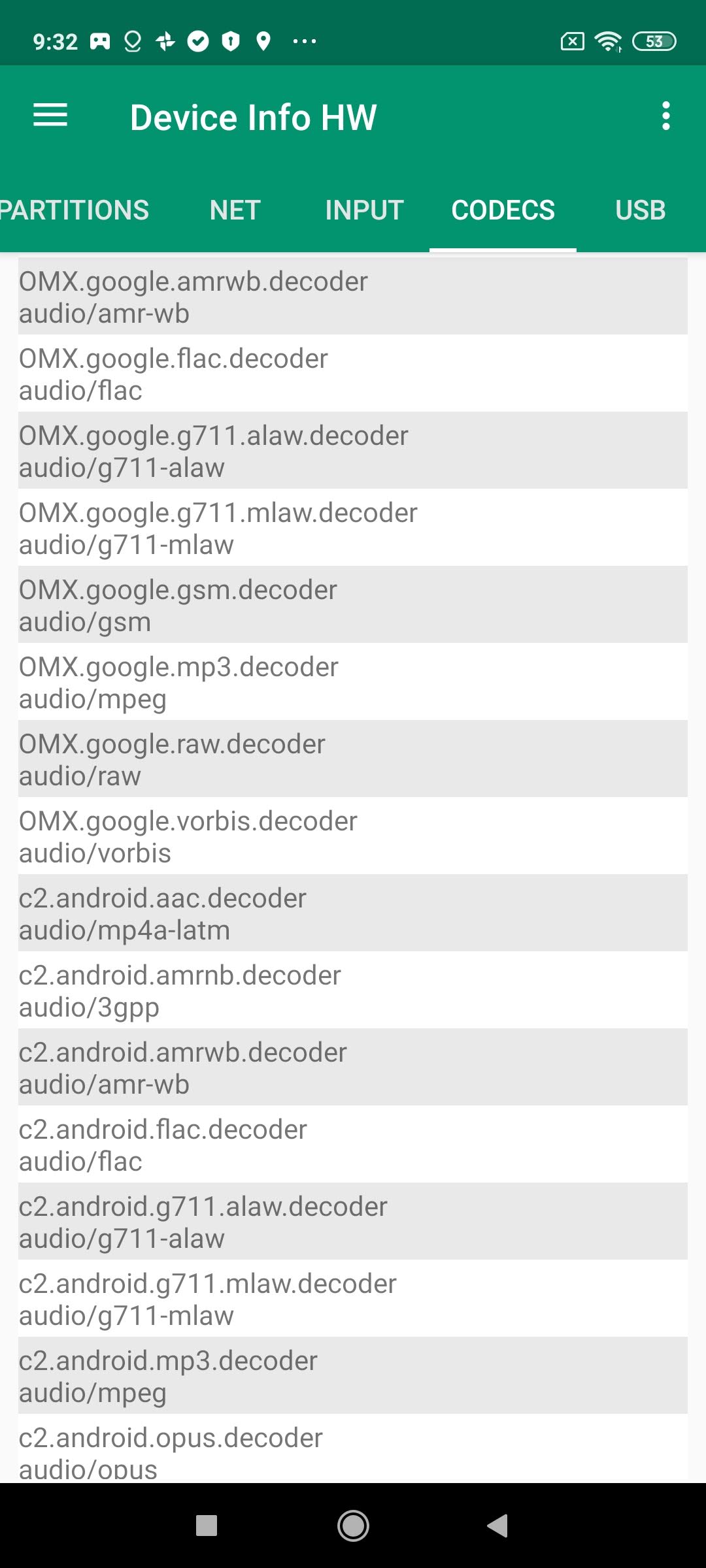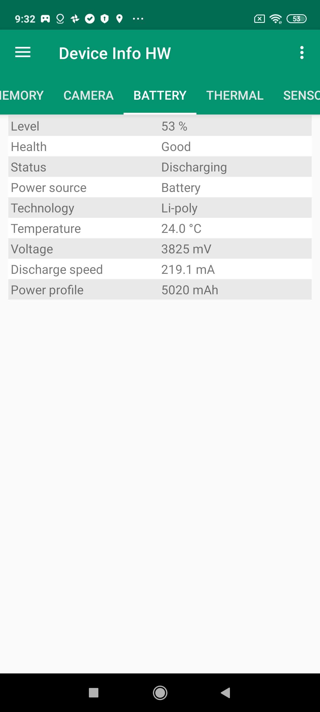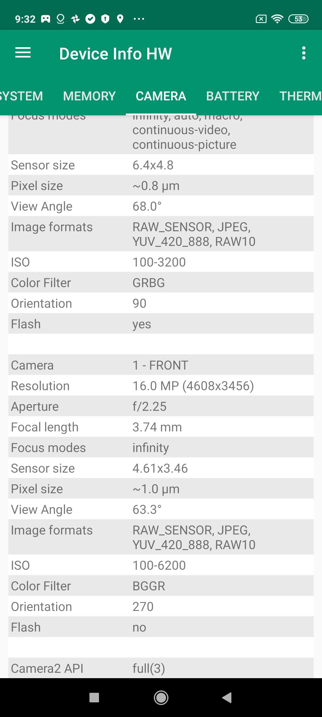 Les informations ci-dessous proviennent de l'application Device Info HW. L'application fournit des informations techniques détaillées sur le téléphone testé.